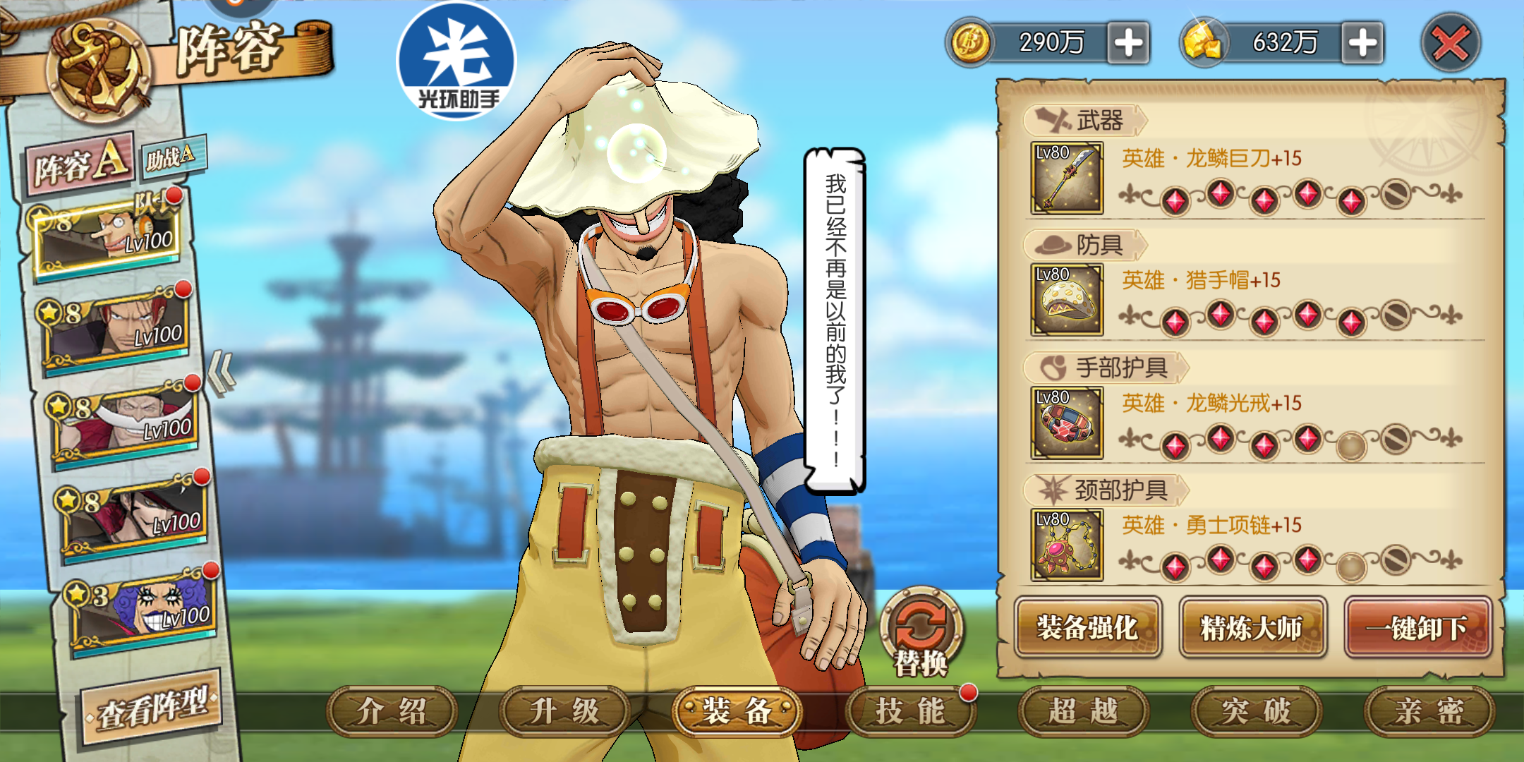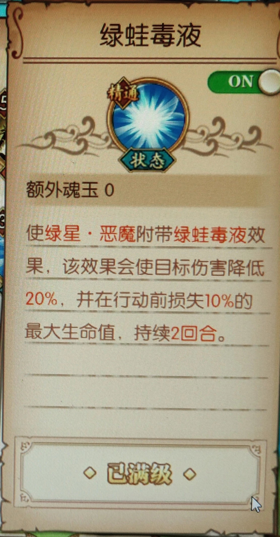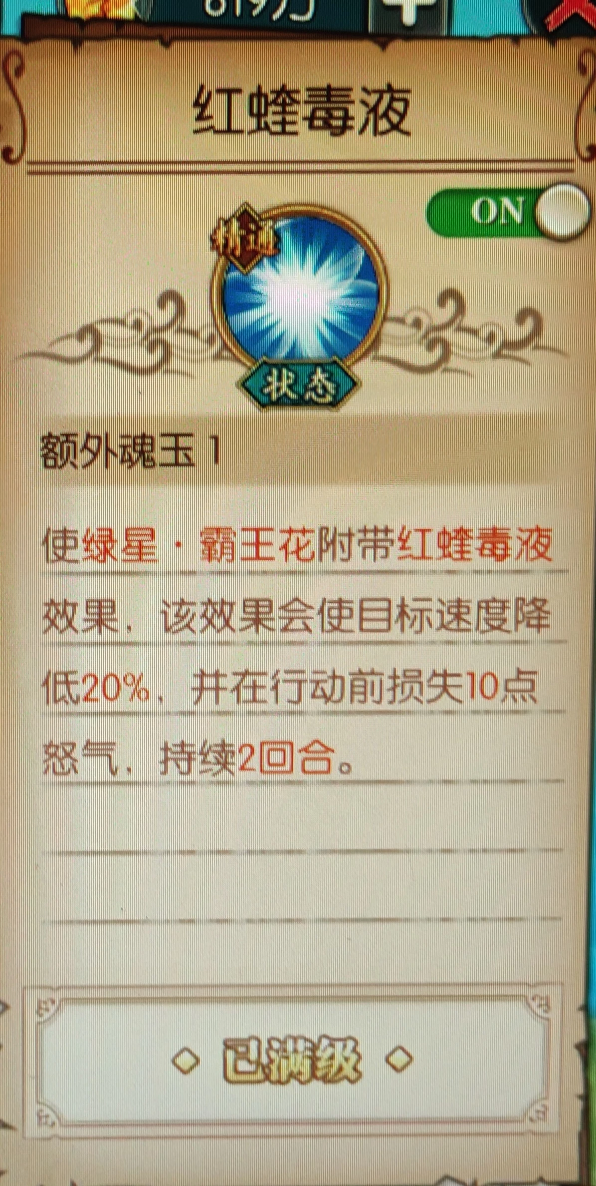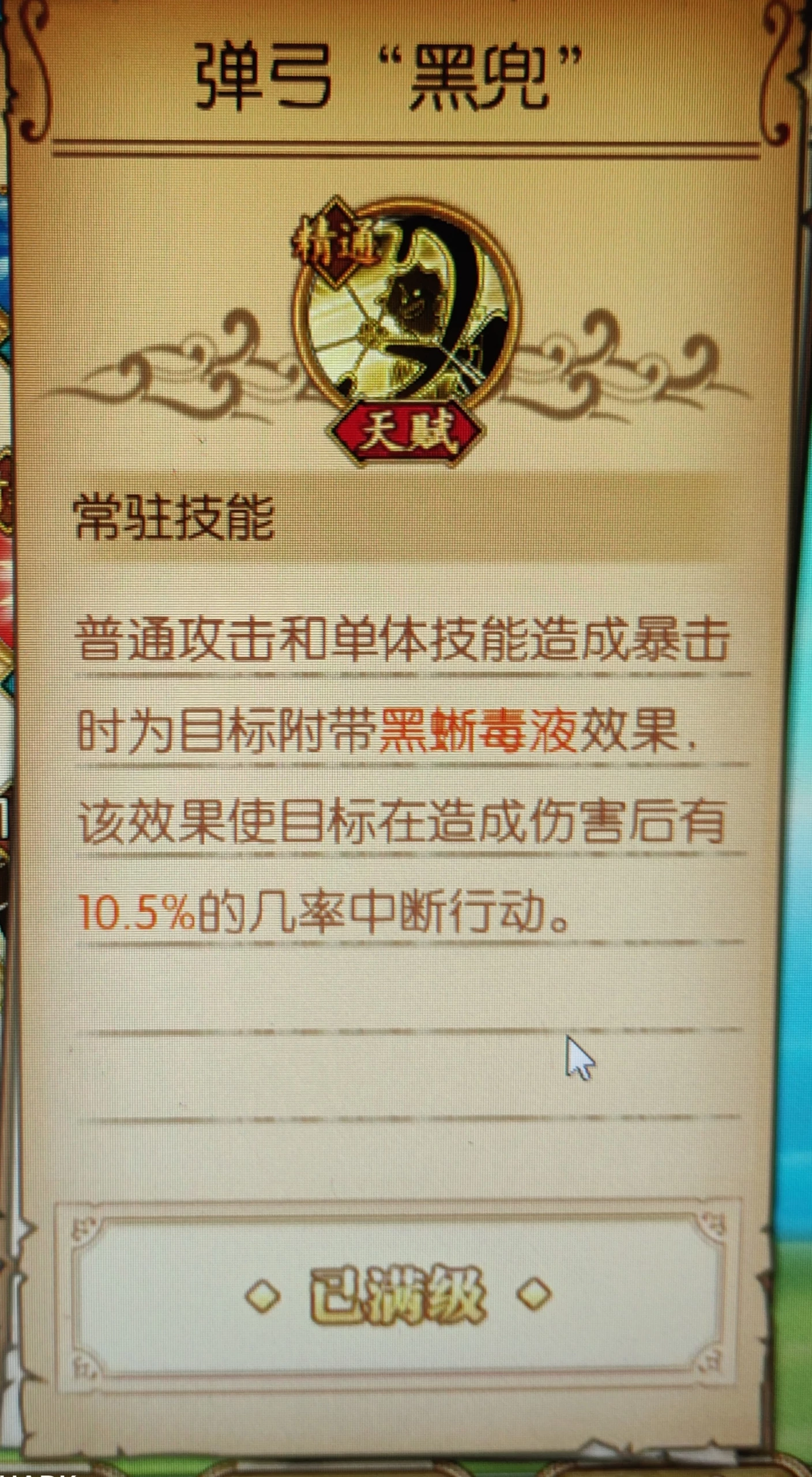 天梯实测:重点在于黑毒,黑毒天赋上面说到了,单体普攻暴击才中,天梯近期被针对,开场首回合技能都会打到前排身上(我的乌索普速度也太慢,一速就会避免这个尴尬,或者把自己队伍内的速度调成一速,避免红发先手前排,乌索普补刀)。这三个毒,白胡子首回合不吃,雷利喝酒会解。