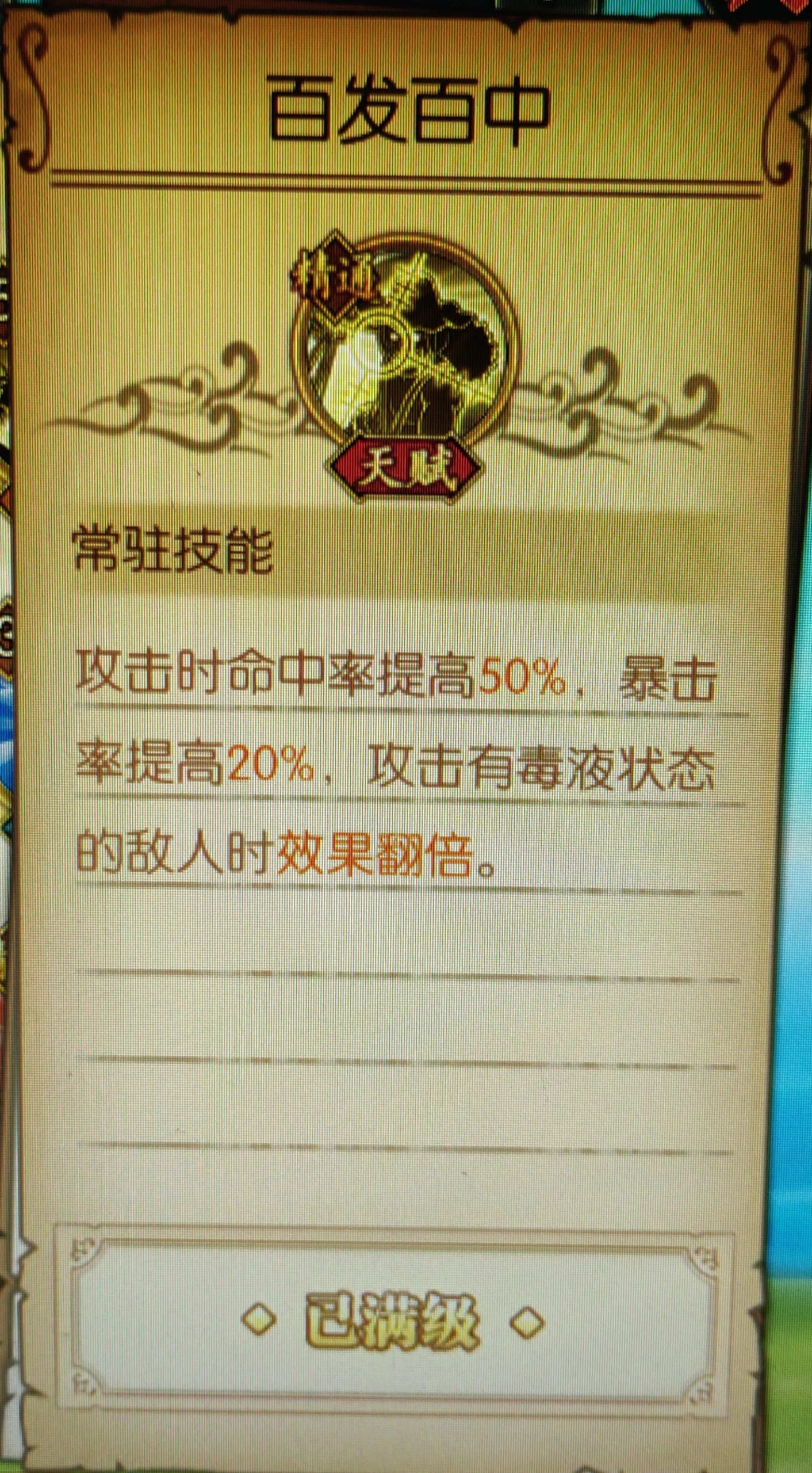 天赋描述理解:攻击时暴击、命中加成,加成到面板数值上,有毒状态下翻倍。