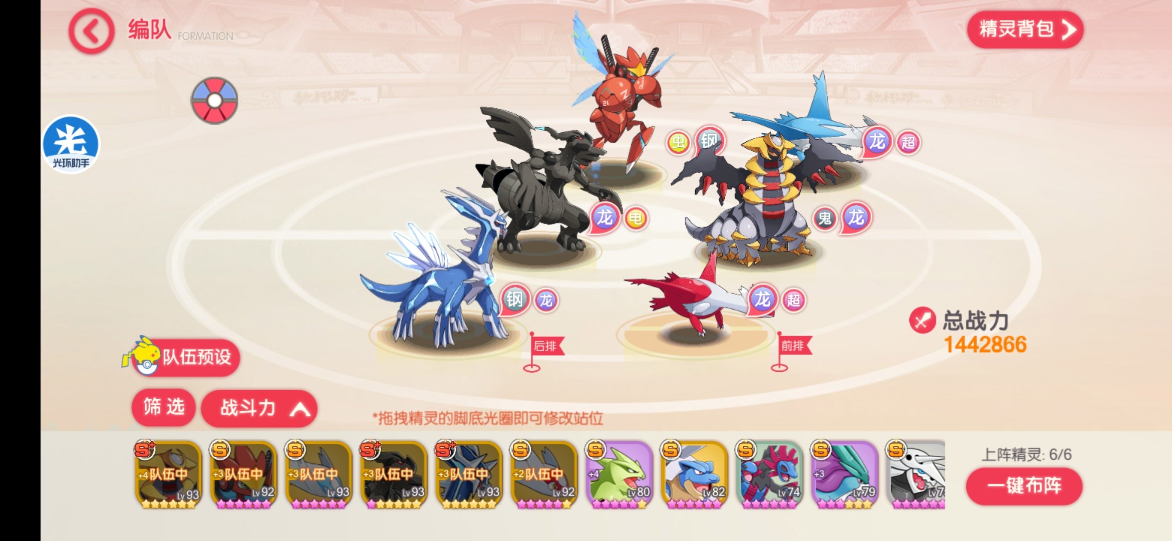 这是我目前使用的阵容,三个S+(还有一只水龙,不过养不起,用来凑羁绊),黑龙和鬼龙都是和区里的朋友们商量拿的限时排名(有一个和谐的区,对平民十分重要,所以希望各位铁子们积极与区里的伙伴们交流哦。)刚龙是抽的魂匣,然后用万能升的六星,不过自我感觉非常的值,刚龙能力十分全面。
