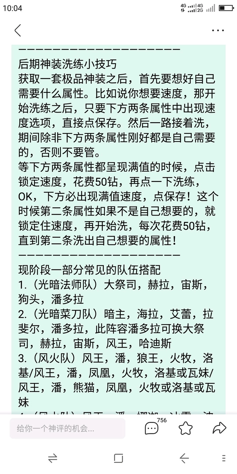 其实不建议一开始就洗速度的,某些难调速的英雄可以留一两件神装后洗。因为最后的调速,要求全队英雄满星、元素等级相同(不同也行,得能估算进去)、符石固定,公会技能等级一致。最后英雄速度之间越接近越好。所以不是洗满速度就是好。洗神装有几率从高级颜色跌落到低级,但橙色满了之后就不会再掉属性了。