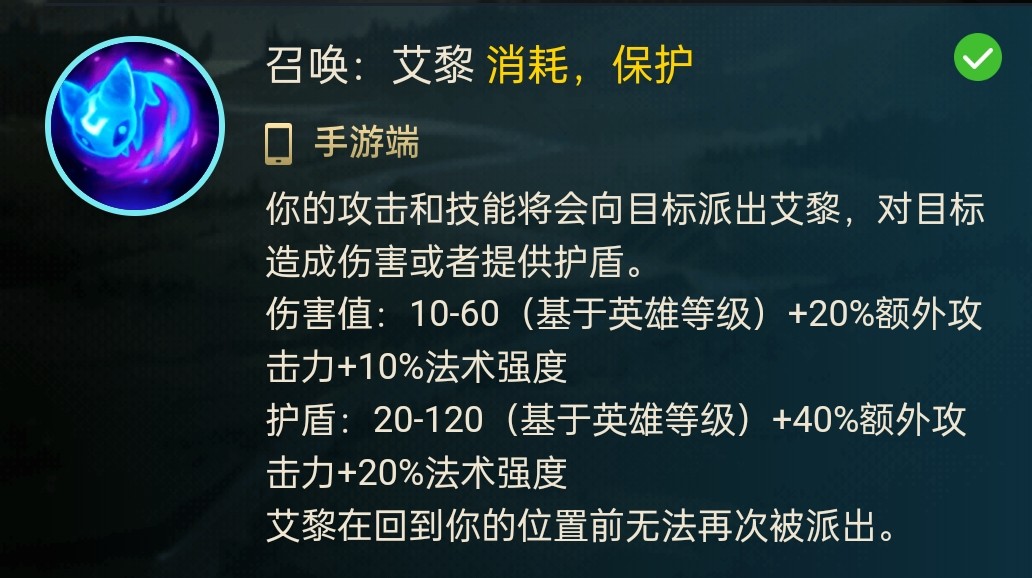 攻击和技能会向目标派出艾黎。使用增益技能命中队友后则会为队友增加一层护盾。优点:既有消耗又有保护,可攻可守。缺点:艾黎的伤害和护盾值都比较低,虽然没有冷却时间,但是艾黎有动画动作和飞行时间同样需要等待。艾黎的护盾值远大于它的伤害所以比较适合软辅使用。需要注意的是只有艾黎回到身边才能被再次派出。