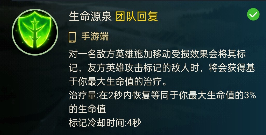 功能性基石,使用比较少,用于某些辅助身上对拼的同时从而帮助ADC回血。优点:攻击标记英雄时可以获得群体治疗效果。缺点:触发机制不稳定,有时候标记的英雄不是队友想集火的。