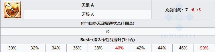 输出向技能,无敌贯通很实用,还有一个高额的红魔放,配合宝具或是三张红卡能打出超高的输出。