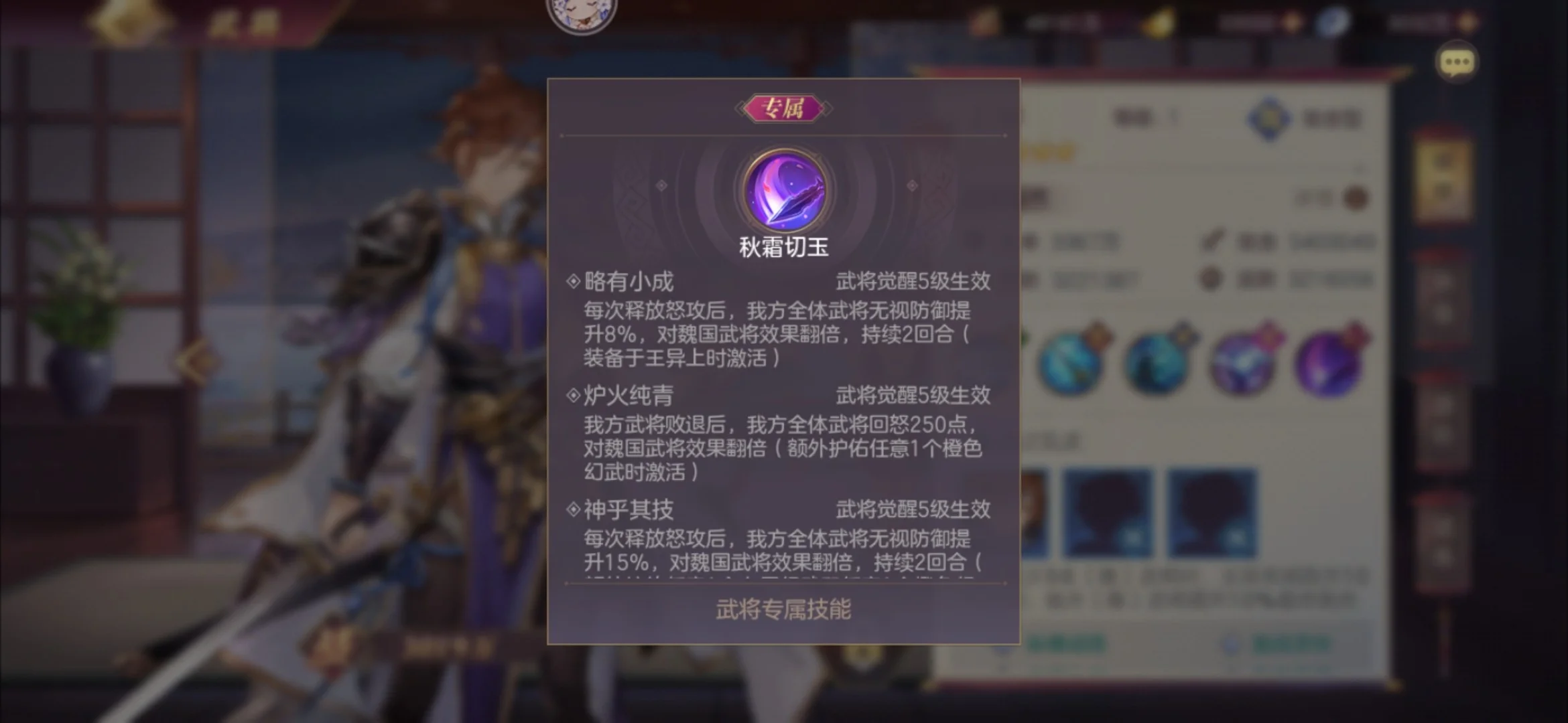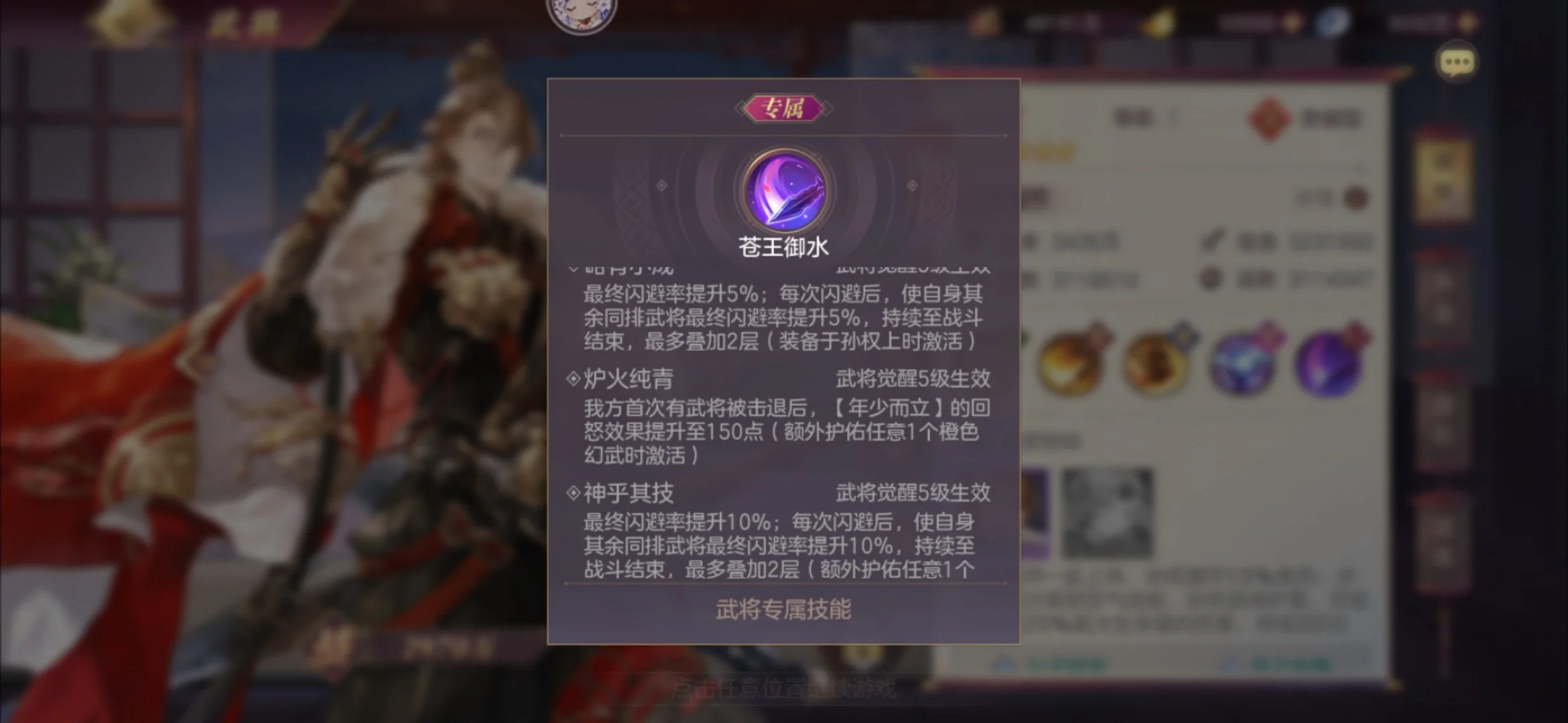 孙权作为最近很热门的武将,配合吕玲绮的专武也是成功登顶,成为当下最热门的队伍之一。其优秀的闪避效果搭配高额的闪避率,也是很好的克制了姜维的登场。而本次专武,则再次提高了自身的最终闪避率,好处在于对自身闪避的硬件需求有所下调,在没有最终命中的情况下,最终闪避的效果是相当不错的。同时,本次专武还增加了孙权一直被诟病的团队增益,原先只有一项回怒,现在闪避后还会给同排队友增加5/10%的最终闪避率,可叠加2层。能不能被驱散还需要实测来验证。