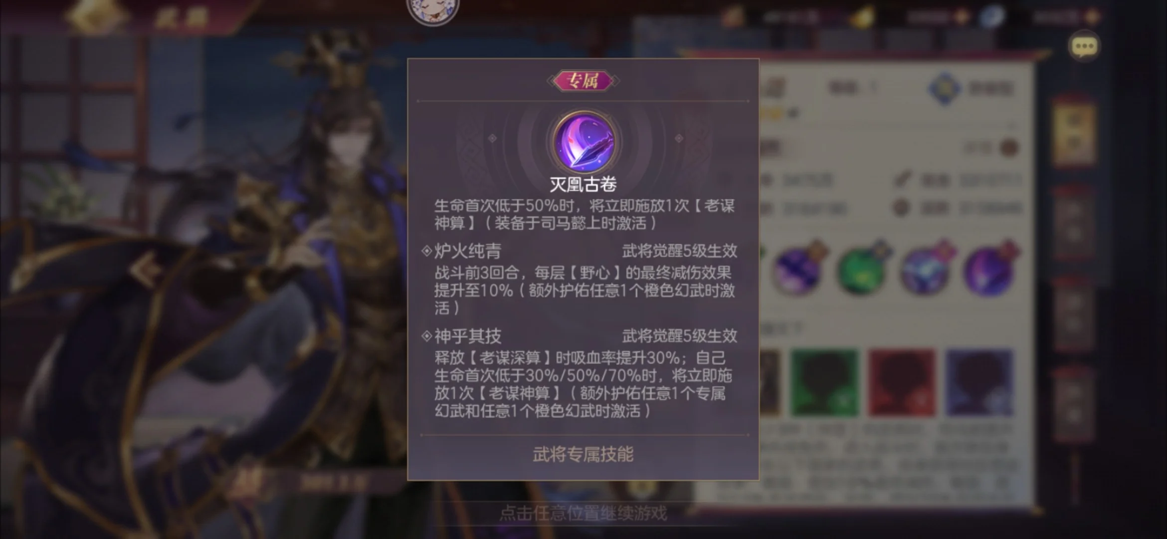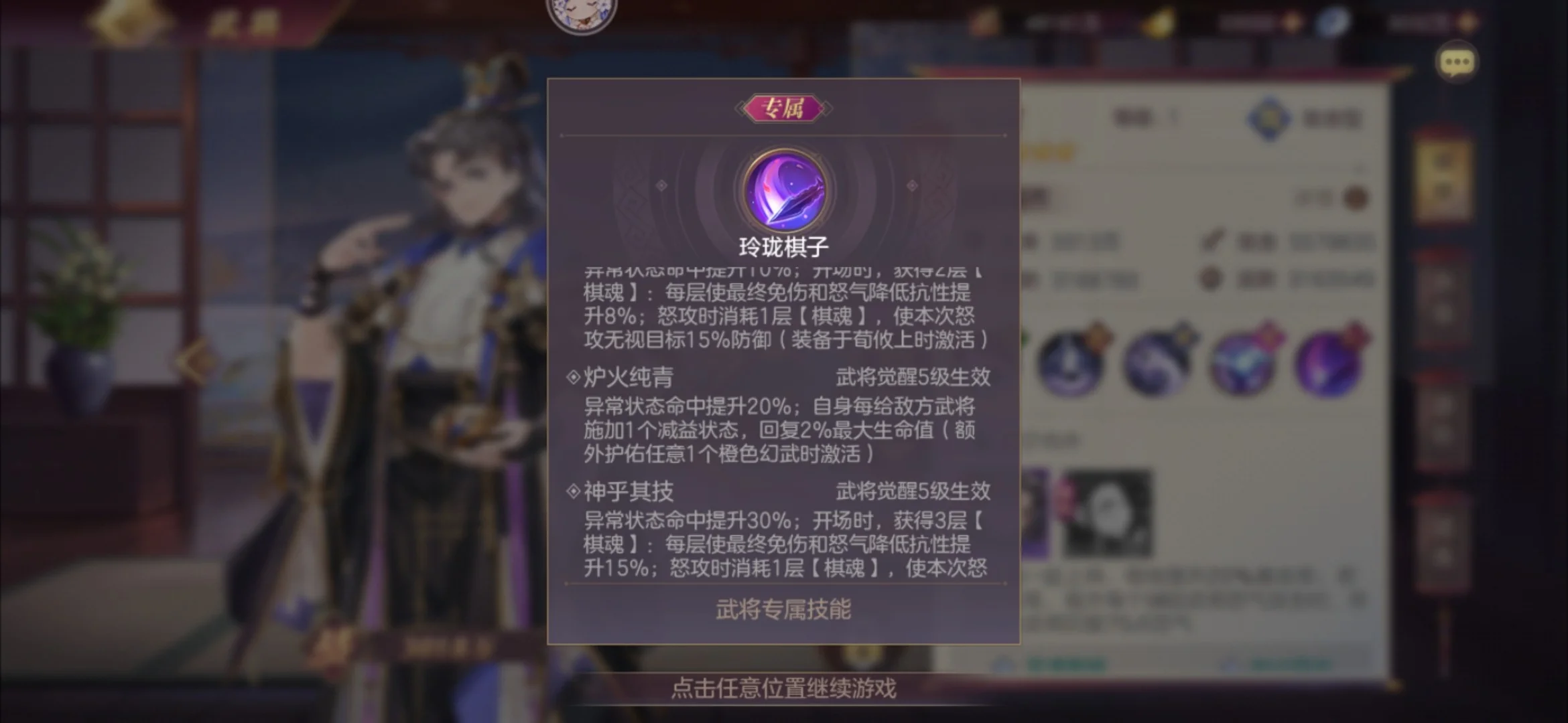本次专武荀攸提升了30%异常命中,开场会获得3层buff,每层提供15%最终免伤和怒气降低抗性,怒攻时会消耗一层,提升怒攻的无视防御属性。总体来看是加强了坦度以及伤害,同时还提高了荀攸的回复能力,每施加一个减益便回复2%最大生命值,即每次怒攻回复24%最大生命值