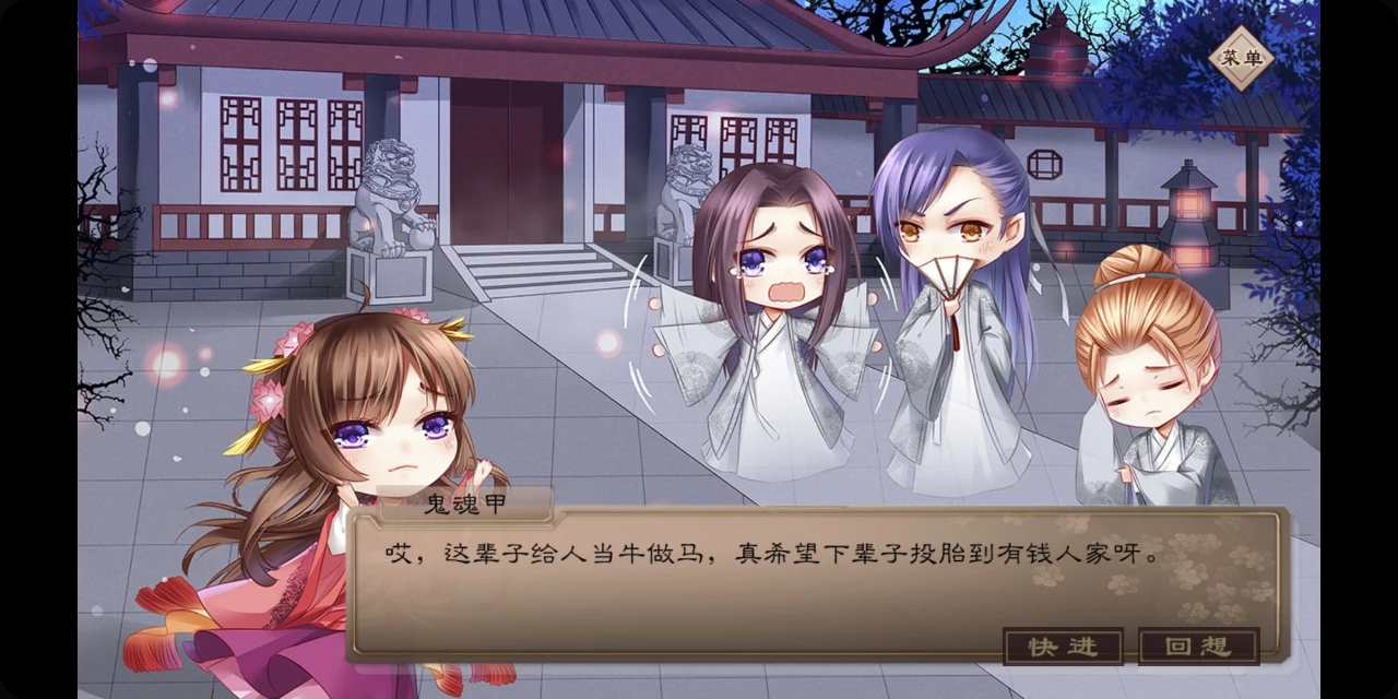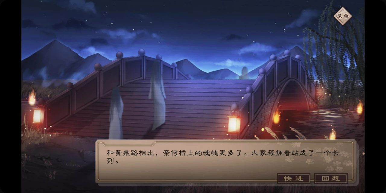 《梦浮灯》是一款恋爱养成游戏,不过背景是阴曹地府。故事一开始并没有玛丽苏的剧情,而是渲染了一种谜团的氛围,很有地府特色的一款互动游戏。
