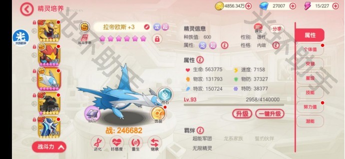 3水都兄妹的性格推荐因为是S级精灵,比较容易获得,所以在水都兄妹的性格上应该要选择最好的性格。拉蒂欧斯是纯输出的特攻精灵,而且自保能力也不错,所以理所应当选择