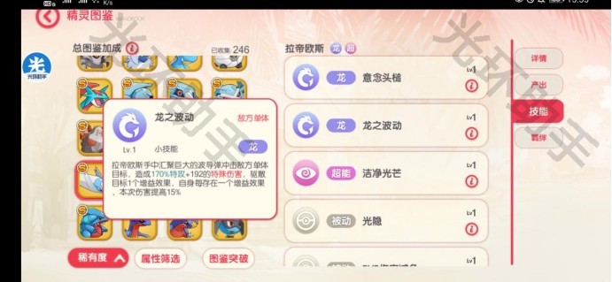 拉蒂欧斯的普通攻击与小技能都是龙系技能,普通攻击附带一个提升3回合10%速度的buff,可以让自己更快出手,而且为小技能提供增益。小技能是单体伤害,驱散敌方一个增益,自身每一个增益,本次伤害提高15%(这个