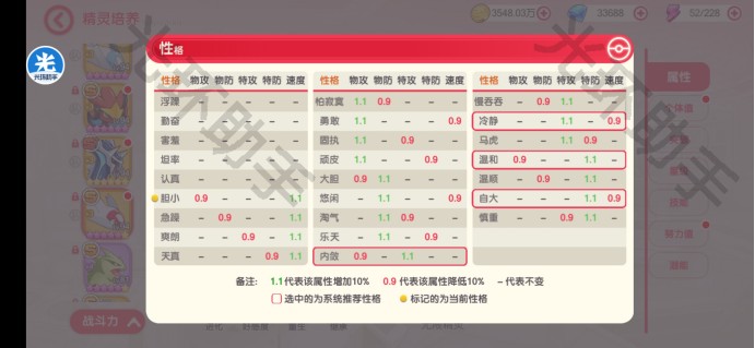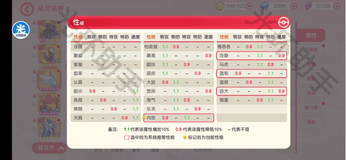 内敛(+特攻-物攻)使精灵输出能力最大化。拉帝亚斯是一个辅助前排,性格方面就没有什么要求了,
