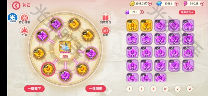 6盾甲+3庇护(楼主的这一套符石给鬼龙了,无奈),盾甲+百分比生命+爆抗、庇佑+治疗率。