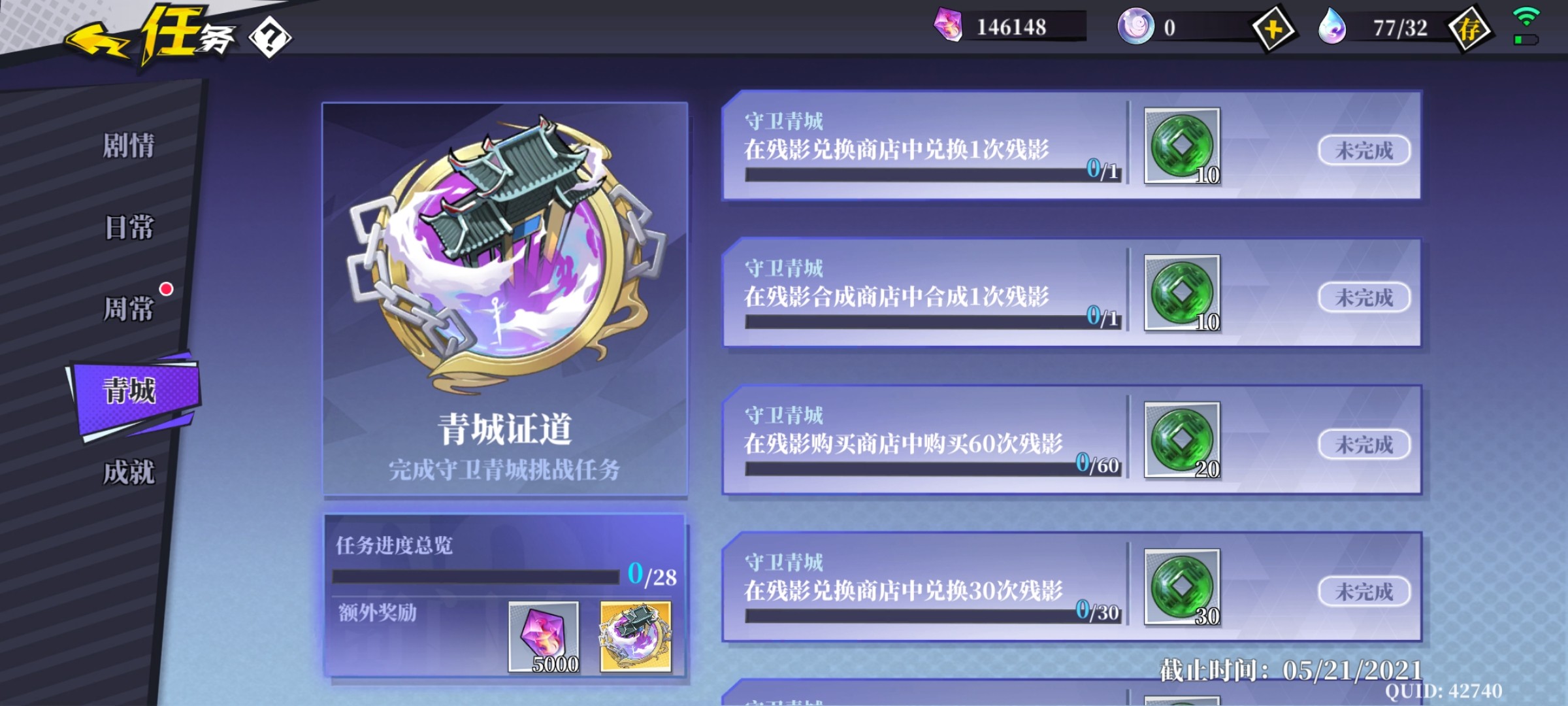 ②全新玩法地图【守卫青城】5月7日凌晨4点~5月21日,限时新玩法正式开始,参与“守卫青城”完成守卫青城挑战任务,即可赢取纪念活动徽章和大量的青灵符