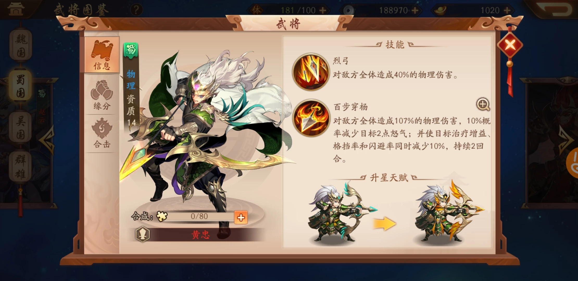 魏延和黄忠作为蜀国的光环将,也就是挂件,可以说是红将中强度最低的两个武将了。魏延是蜀国唯一的控制,黄忠是全体减怒减疗,可惜减怒概率少的可怜,建议是哪个星级高上哪个,资源分配处于最下层的地位。