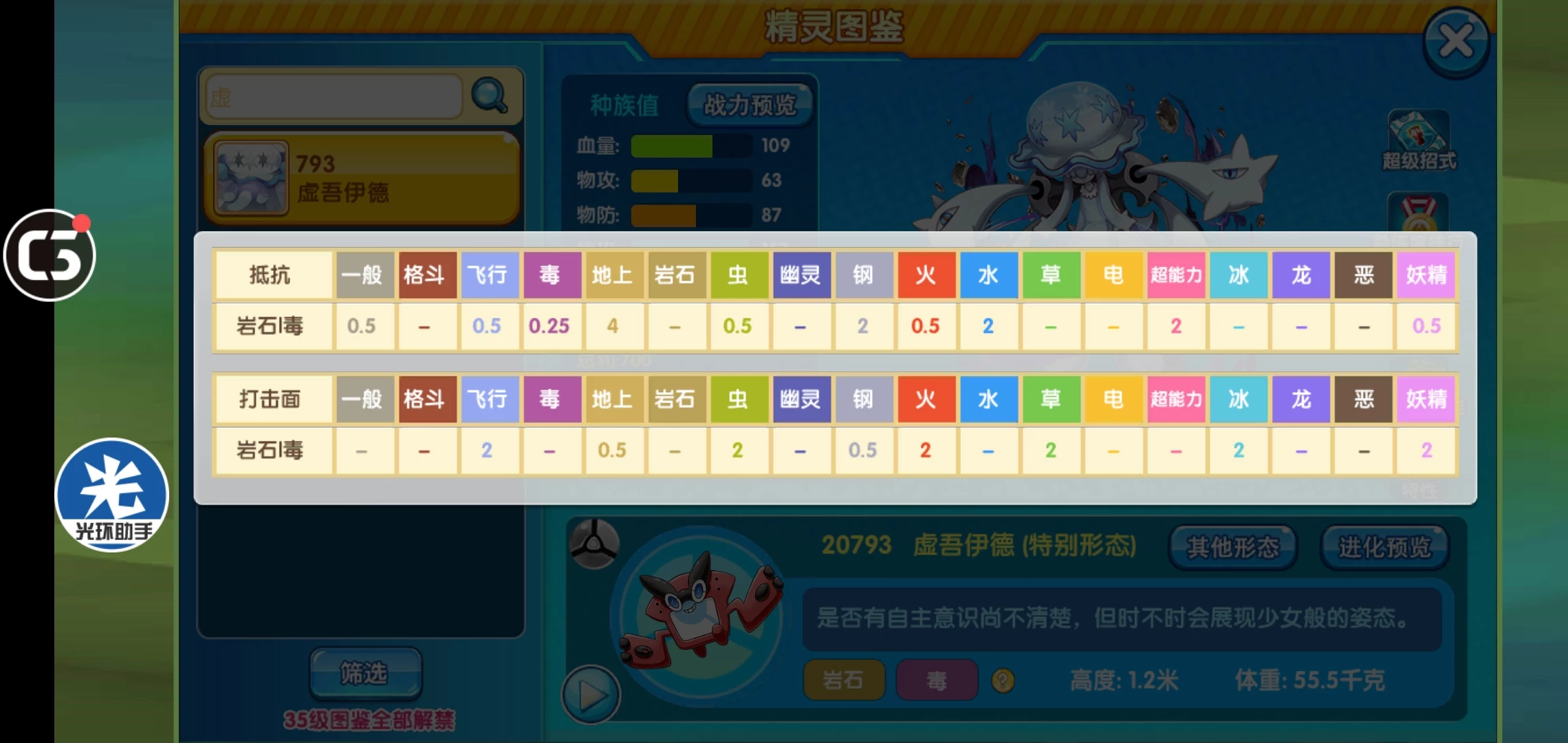 弱2倍水系、超能系、钢系,四倍地面系,其中水系和地面系属于主流打击属性,要注意切换防御,二倍抵抗一般系、虫系、火系、妖精系、飞行系,四倍抵抗毒系,其中主流的特殊攻击属性就火系和妖精系,作为一个特盾来说这个属性抵抗还算可以,搭配好队友,真的是非常恶心。