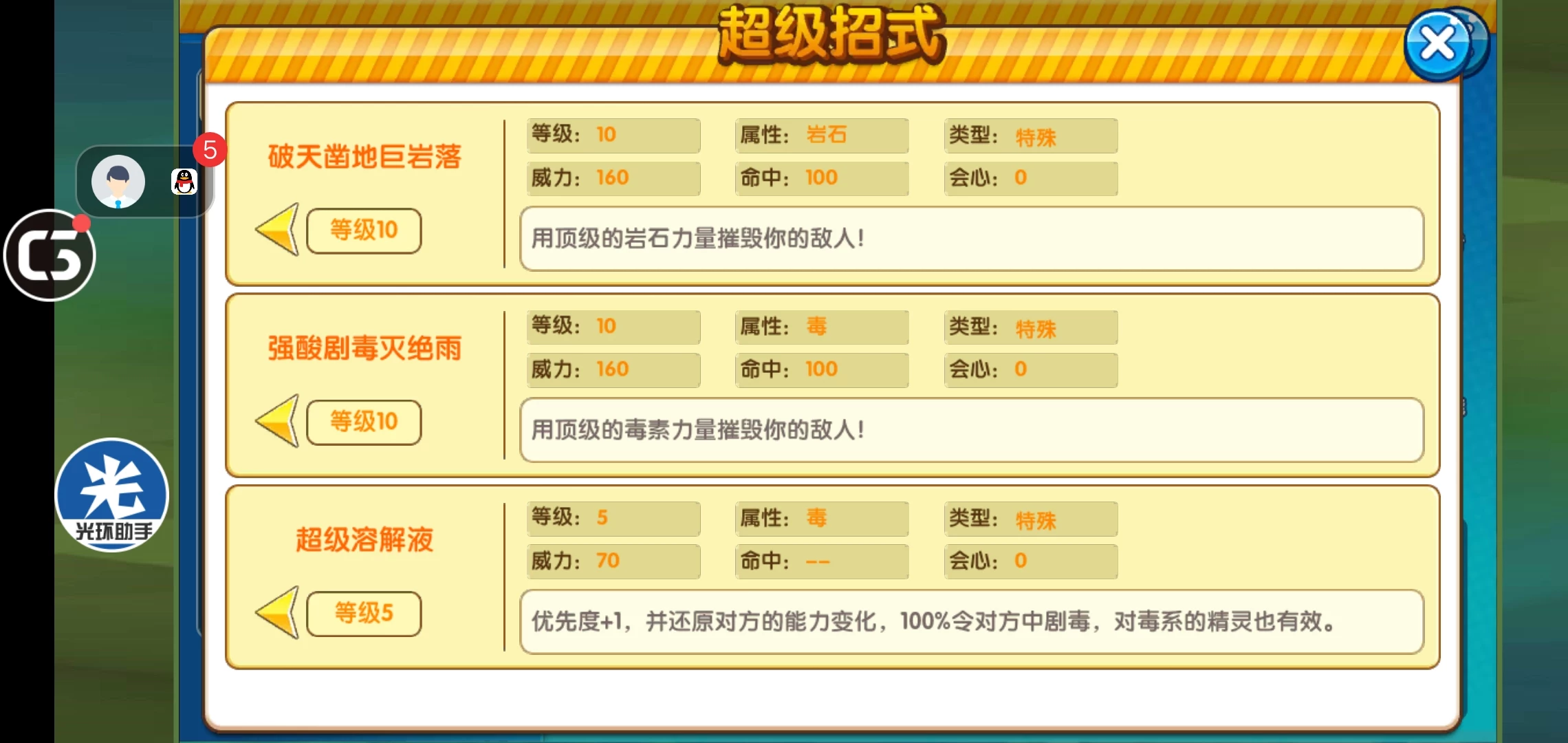 它的Z技能有三个,前两个是攻击性的,不推荐,只推荐使用最后一个,超级溶解液。它的效果是优先度+1,并还原对手的能力变化,100%令对方中剧毒,对毒系的精灵也有效。