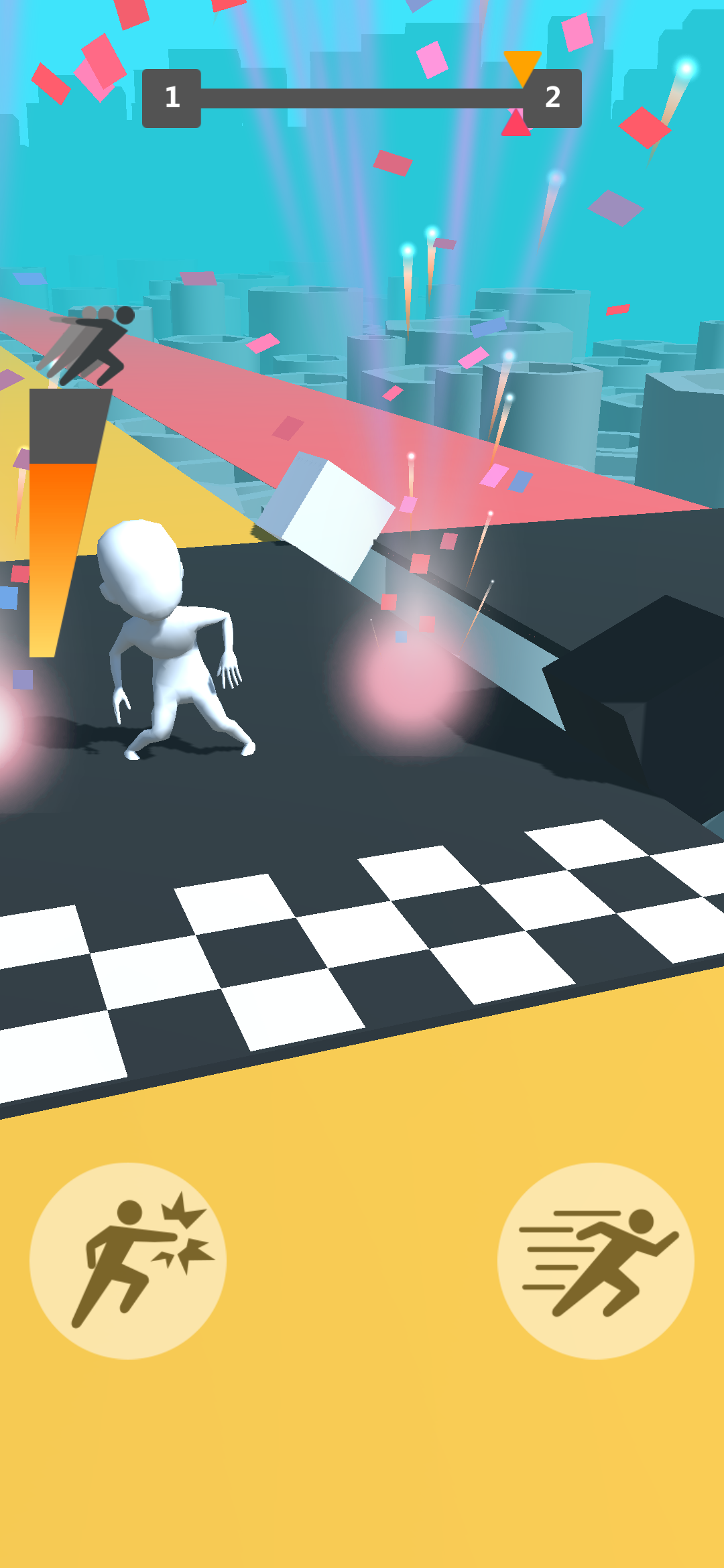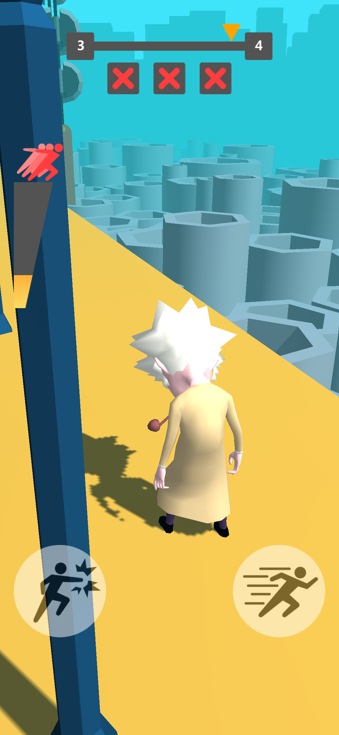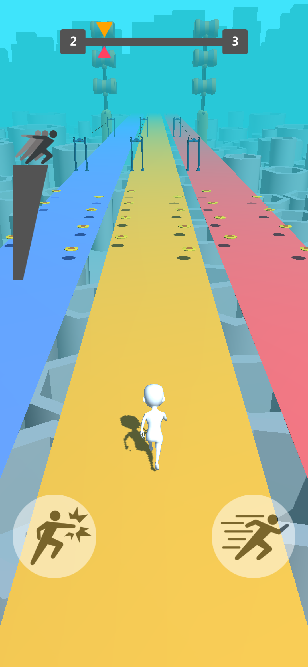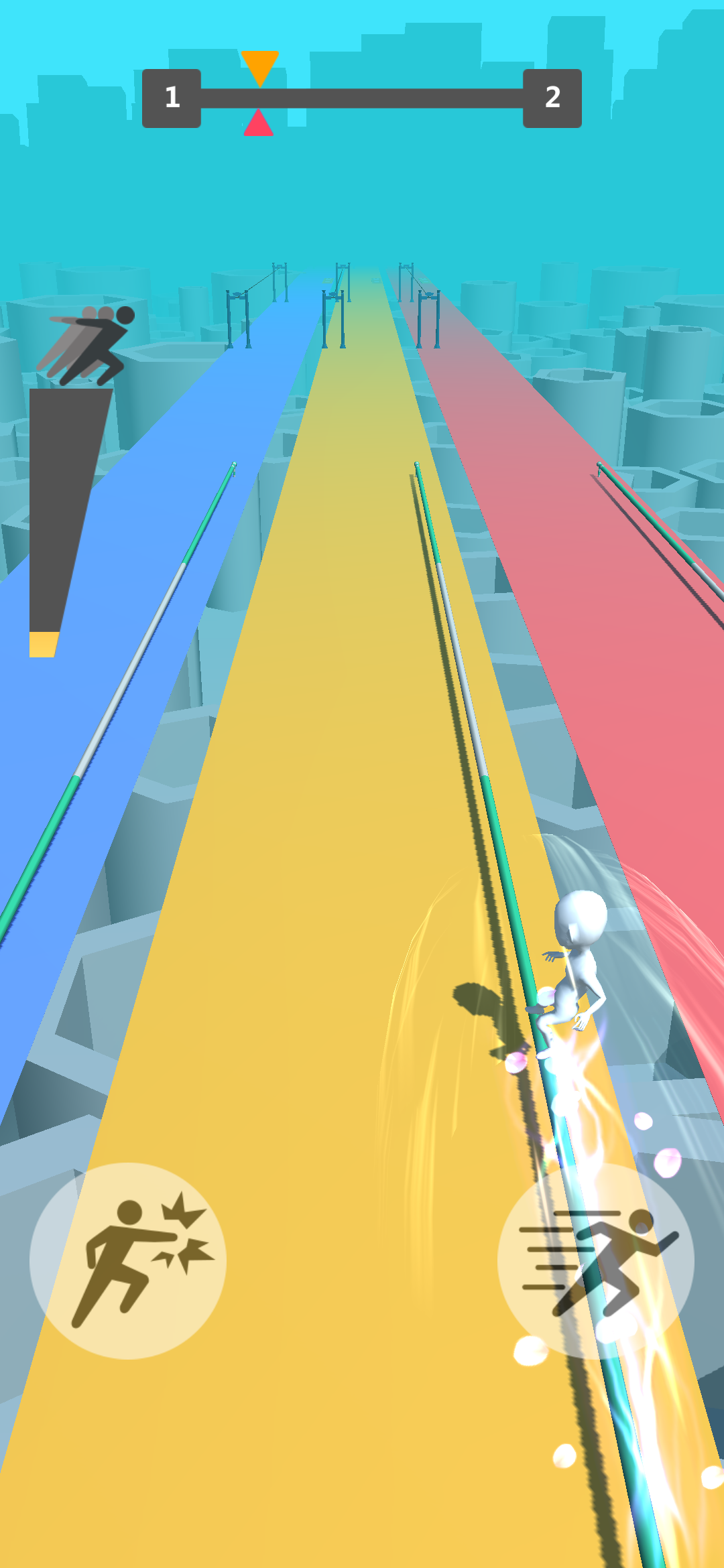 操作简单到想哭,一个滑梯键外加一个攻击键即构成了《我跑酷贼六》所有键位,玩家需要在靠近“加速装置”时长按滑梯键即可完成加速,而路上出现障碍只需要将它击碎(正所谓,没什么可以阻挡我跑酷的热情),最后的胜利者当然就是在这些机关面前失误次数最少的玩家。