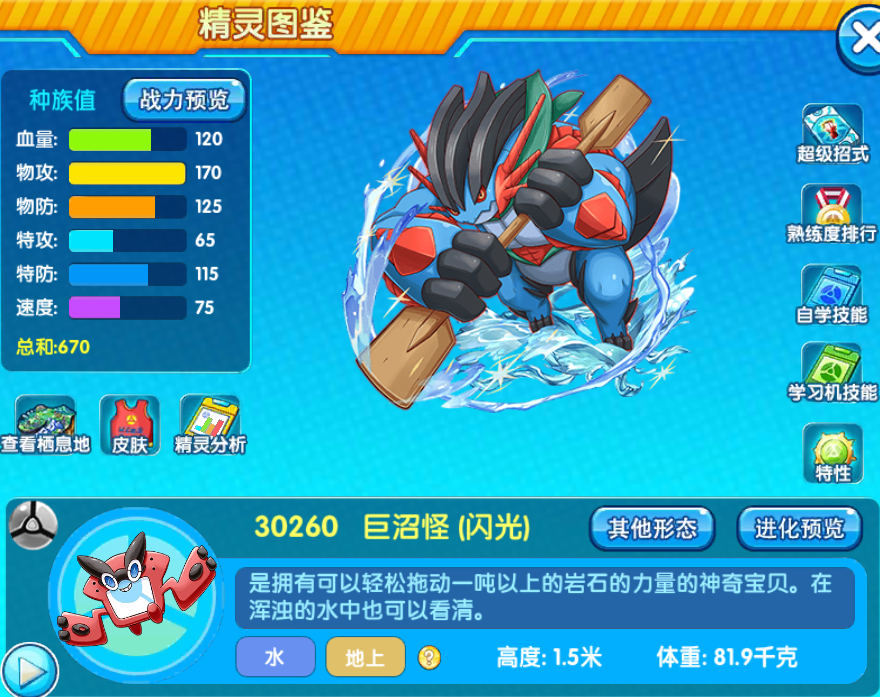 闪光巨沼怪原来是2018年的端午节限定精灵,刚一出场的时候,并不被所有玩家所看好,但是到后来专属的出现,以及闪电鸟新型态登场,让巨沼怪重新进入到很多玩家们的视野当中,并一直活跃到现在。