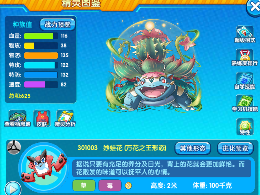 只是在速度方面,大菊花的速度可能会比巨沼怪要慢,没有先手使用技能的优势,这可能导致如果对面人品爆发猛毒素发发中,那就很尴尬了。
