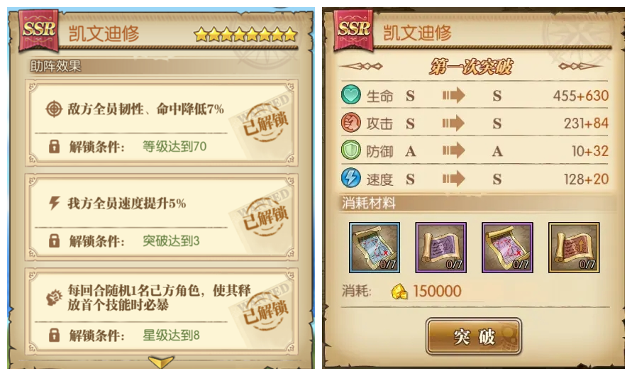助阵效果与突破材料:卷轴与海图