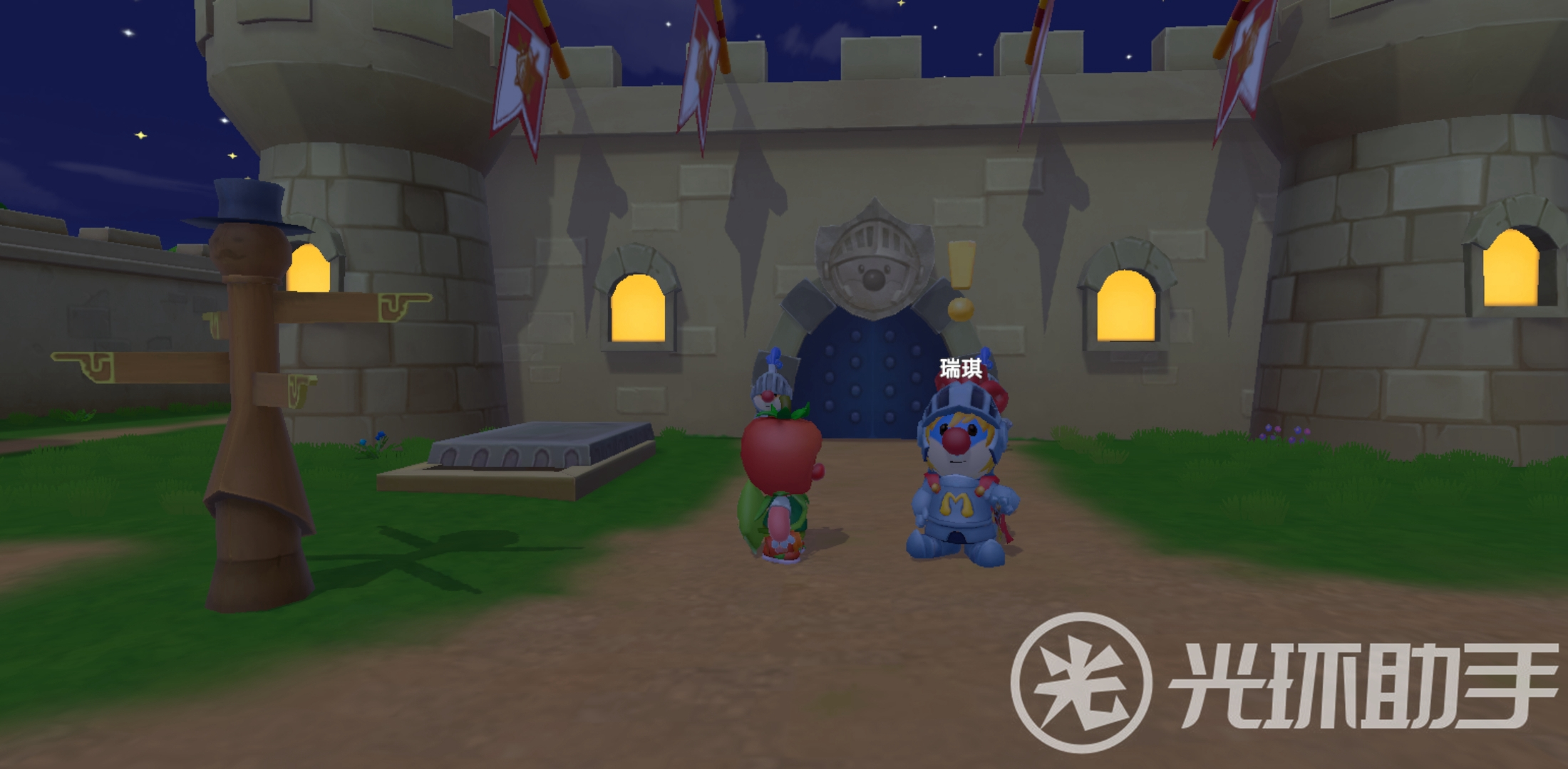 瑞琪就站在堡垒前,和瑞琪好感度达到一定等级可以领取骑士套装。