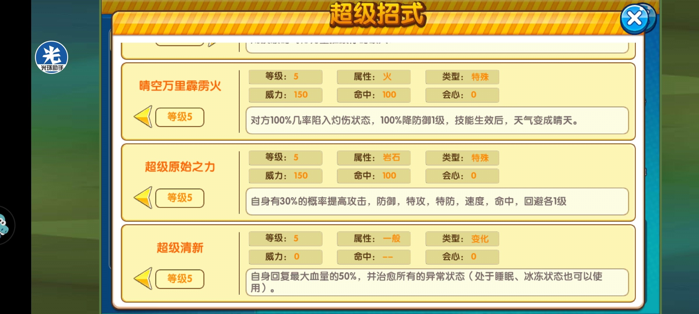 工具人:关键道具炎热岩石,用炎热岩石可以撑晴天回合数,把回合数升至8回合,然后可换队内收益宠物