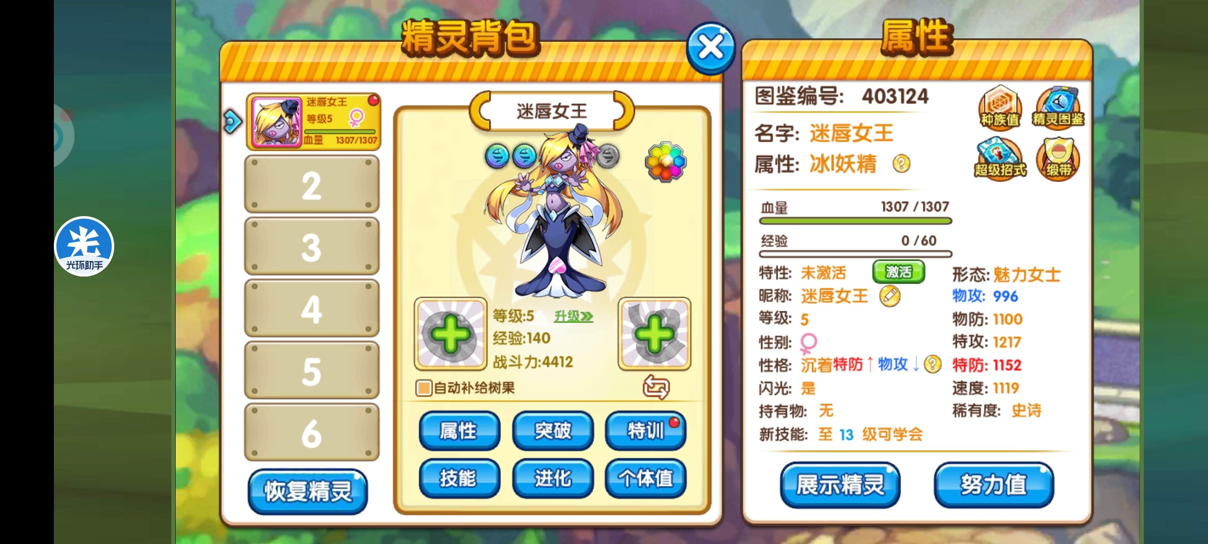 获取:氪金52级别,买仙子伊布送了个,关键送的技能强度很高。