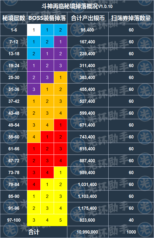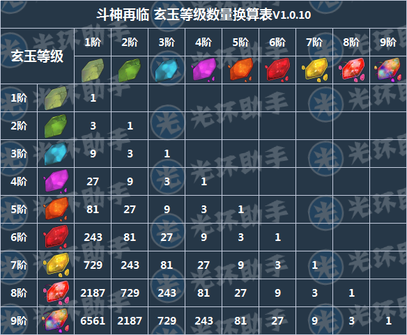 【数据图鉴】秘境掉落概况、玄玉数量等级换算表9班小江同学发布于 2021-05-20关注秘境作为游戏内装备产出的主要途径,up整理了一份秘境掉落概况表,方便各位魂师大人检索。(下图装备掉落栏,数字代表装备星等,颜色代表装备品质,例:紫1=紫色1星,黄5=金色5星)目前版本,玄玉的主要产出途径是通过分解装备获得大量1阶玄玉去合成更高阶的玄玉,up也整理了一份玄玉数量换算表供各位魂师大人参考。