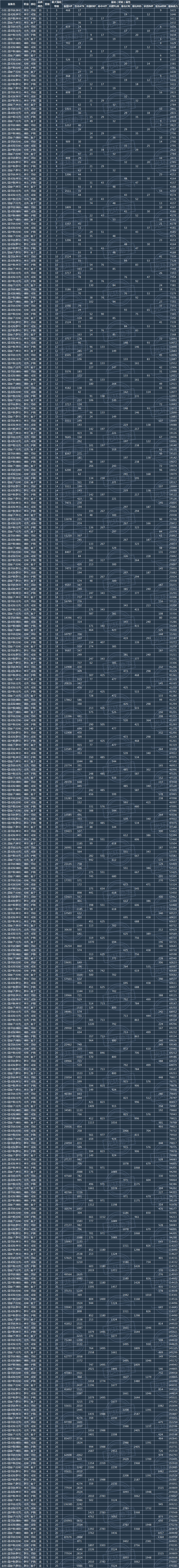 表格收录了从白色1星到金色5星的所有装备基础属性值和战力值。