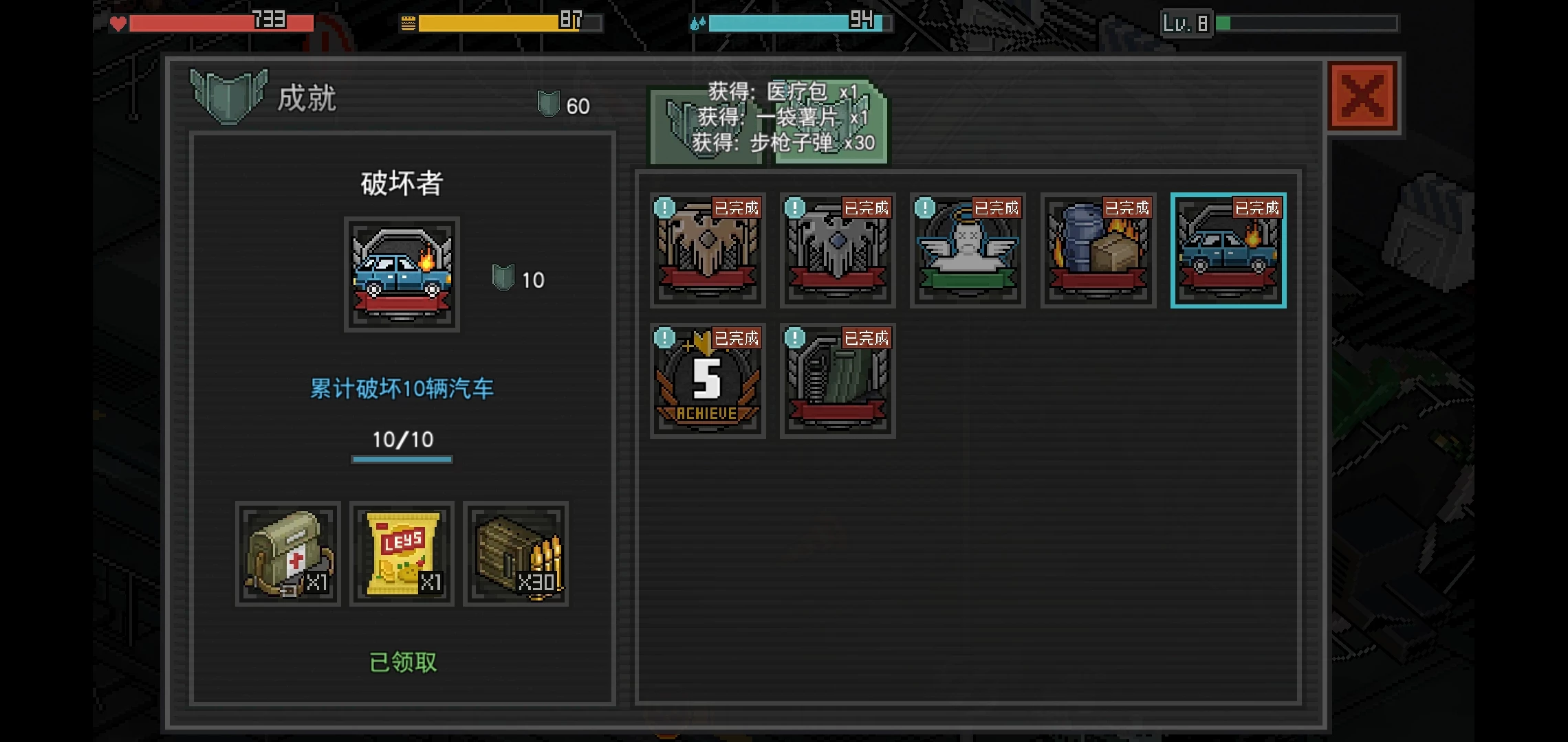 而且在游戏之中的我们还拥有提升等级的能力,同时击杀一定数量的丧尸,我们还可以完成成就任务,完成任务之后,我们还可以获得很多丰富的奖励。对于这个游戏来说,无论你是喜欢惊险刺激的冒险,还是说喜欢野外求生的物资收集都可以上手一试,游戏内容一定会让你感觉耳目一新。