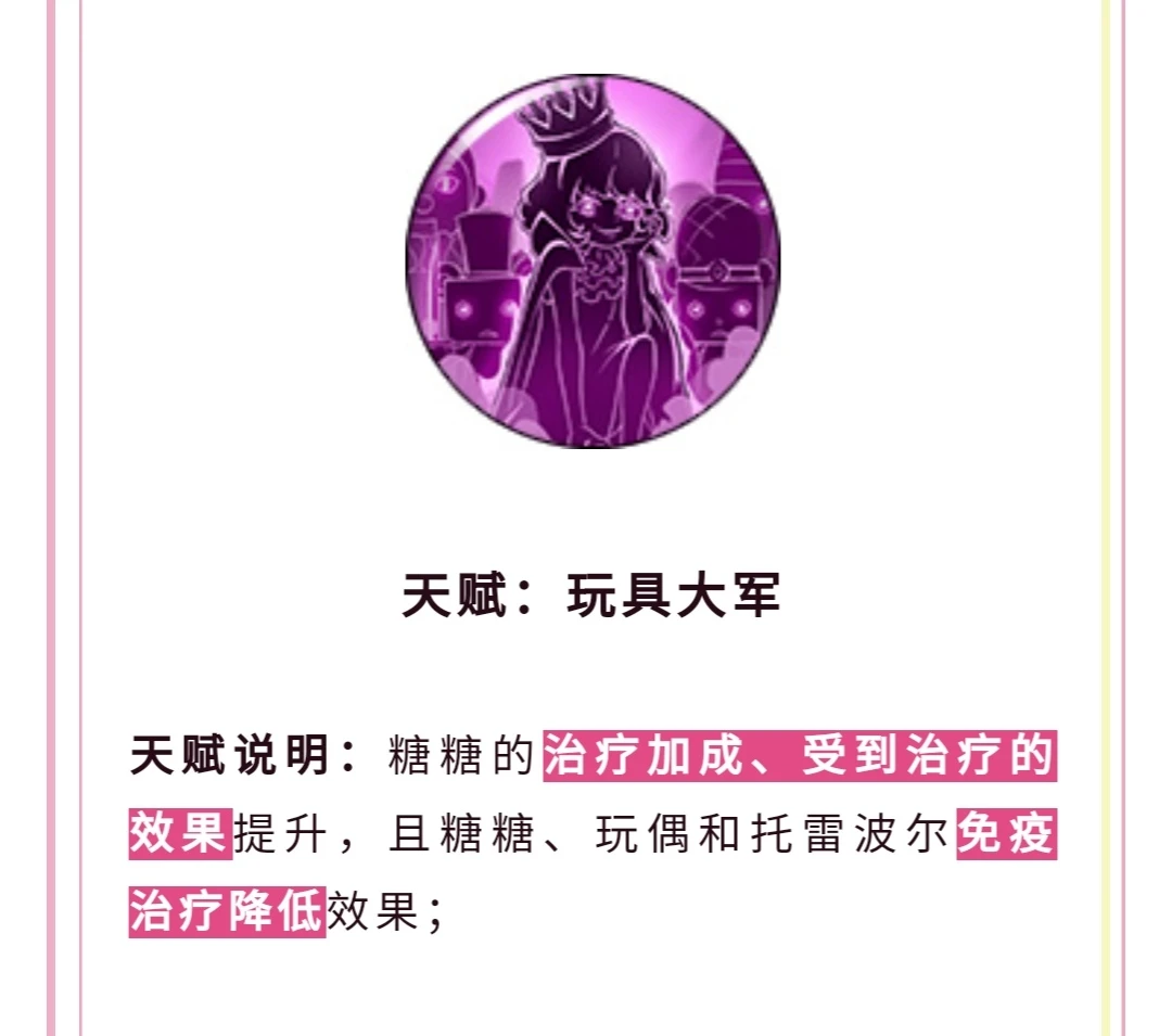 本次砂糖的强度目前看起来还是不错的, 但天赋还没出完,而且还不知道玩偶是怎样攻击的。虽然说附带的效果和天赋都非常好,但不知道攻击模式也是没有用的,就像之前饼干天赋那么强,出来却是一个这样的角色。