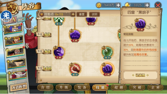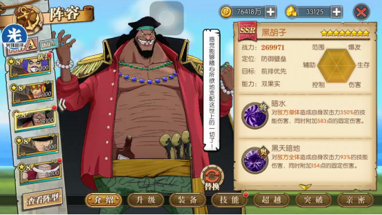 从人物的面板上看到黑胡子的6围都是六边型战士,除红发与白胡子就是黑胡子高6围的人物,综合面板如此高。他的技能与天赋真的是相当恐怖,现在真正开始黑胡子天梯主线时代的玩法。