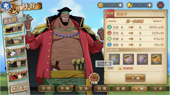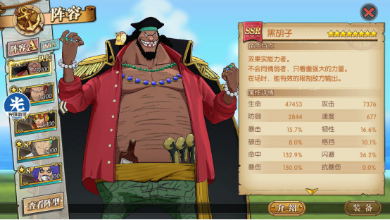推荐玩法:先3+5+奥义,玩一个辅助的黑胡子先 终结与技能看自己的索隆能一刀多少流,这样选择打法黑胡子的本身血量就很高了,减伤效果高,宝石更加推荐与防御型为主,主攻击力就好了,终极培养血量与防御。