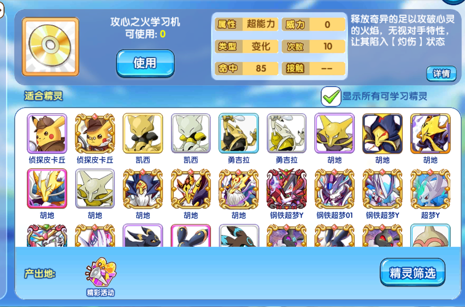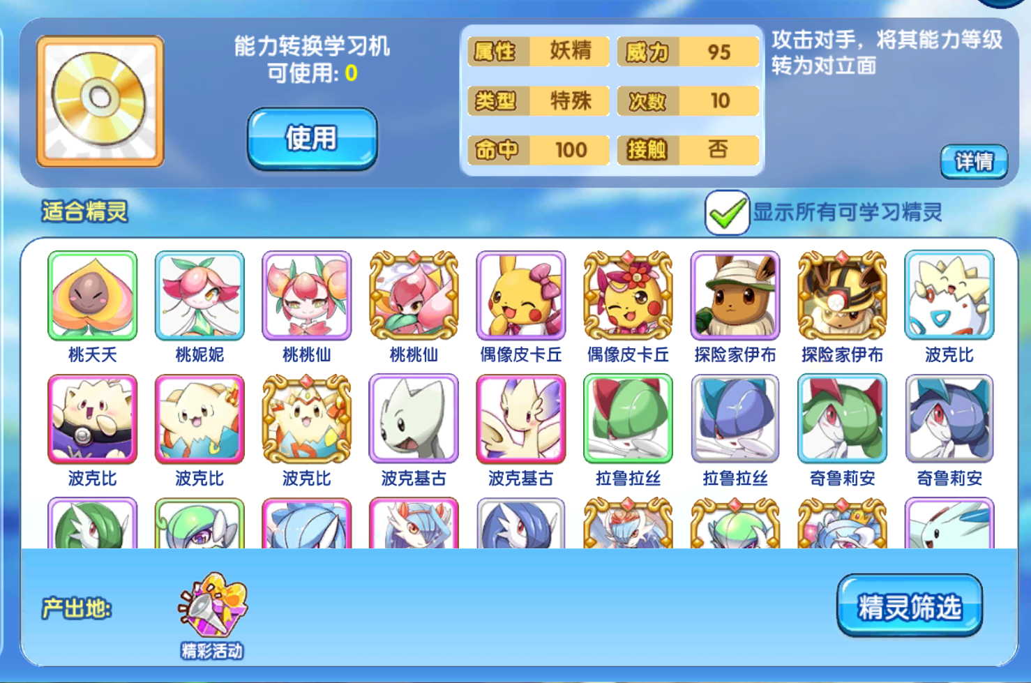 能够使用这个技能的精灵还是蛮多的,但实际上都比较的冷门,就算是这个女王,也没有多少人在用,很多玩家都是为了去买这个技能的,因为效果实在是太棒了,可以补充好多精灵的打击面缺点,就比如说沙奈朵,一般来讲,沙奈朵遇到钢属性的精灵,几乎就崩溃了,但是能够学习这个技能,基本上就可以解决了,其他精灵的话都是比较冷门的,不是特别的推荐了,而这个技能的效果也只有这么简单的效果啦,我就只讲到这里啦
