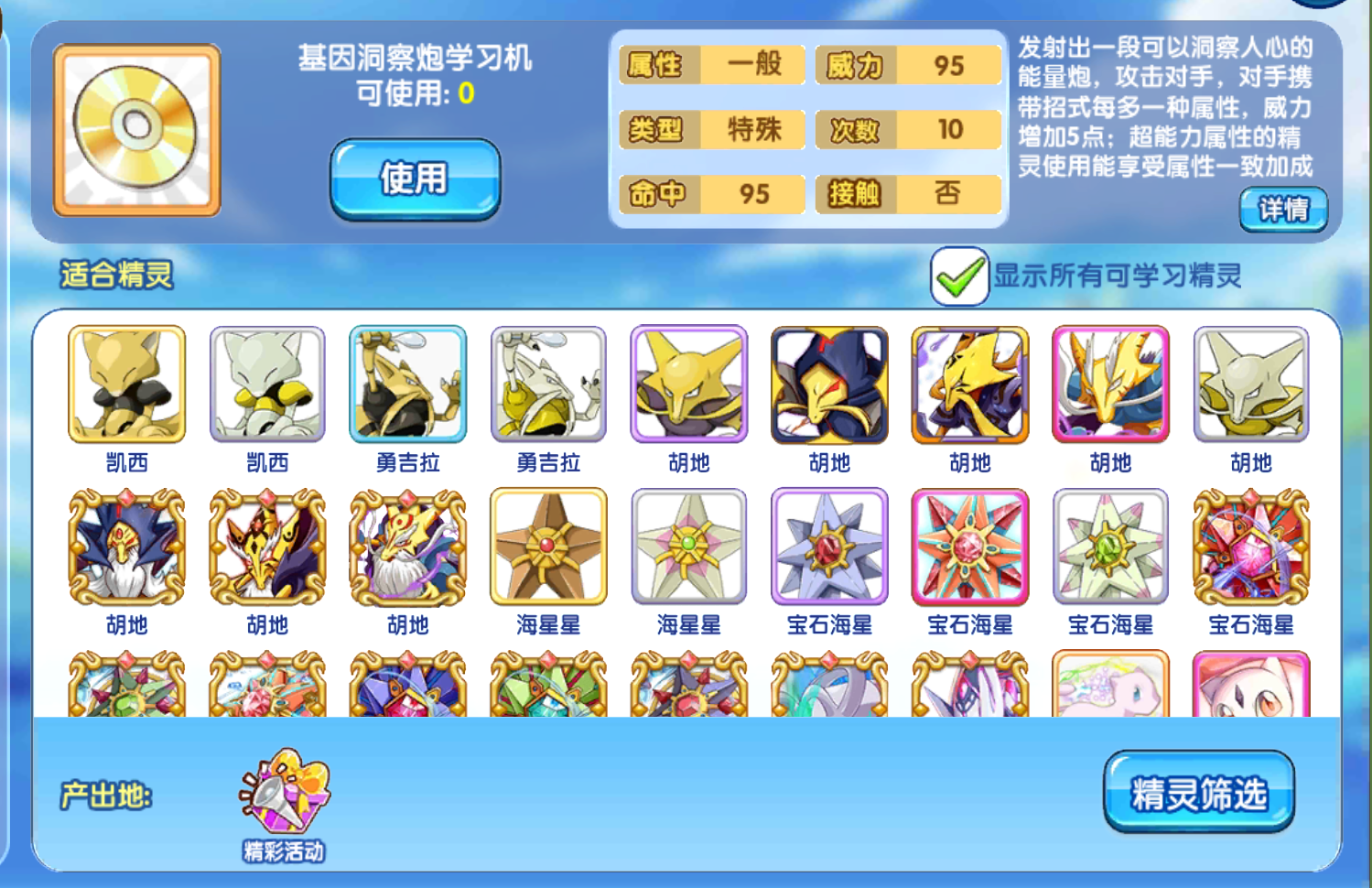 其他精灵的话就不是特别的推荐了,因为其他精灵都有更好的技能,可以使用或者是好多精灵比较冷门学了也是白学