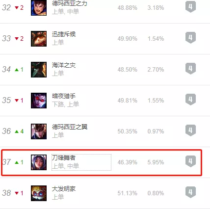 手游君点评:刀妹这个英雄及其吃操作,上限和下限都很高,所以胜率一直都不好看。优点是在单人线上十分强势,有回复、有控制、有清线;但缺点是团战容错率低,不好发挥,太过吃发育和装备。