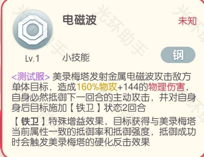 美录梅塔也是一个百搭的精灵,本身对于大招的提提前触发要求也不高。 如果硬要说搭配的话,那么主要是搭配基拉祈和钢龙来触发八星被动的一个全体钢盾效果