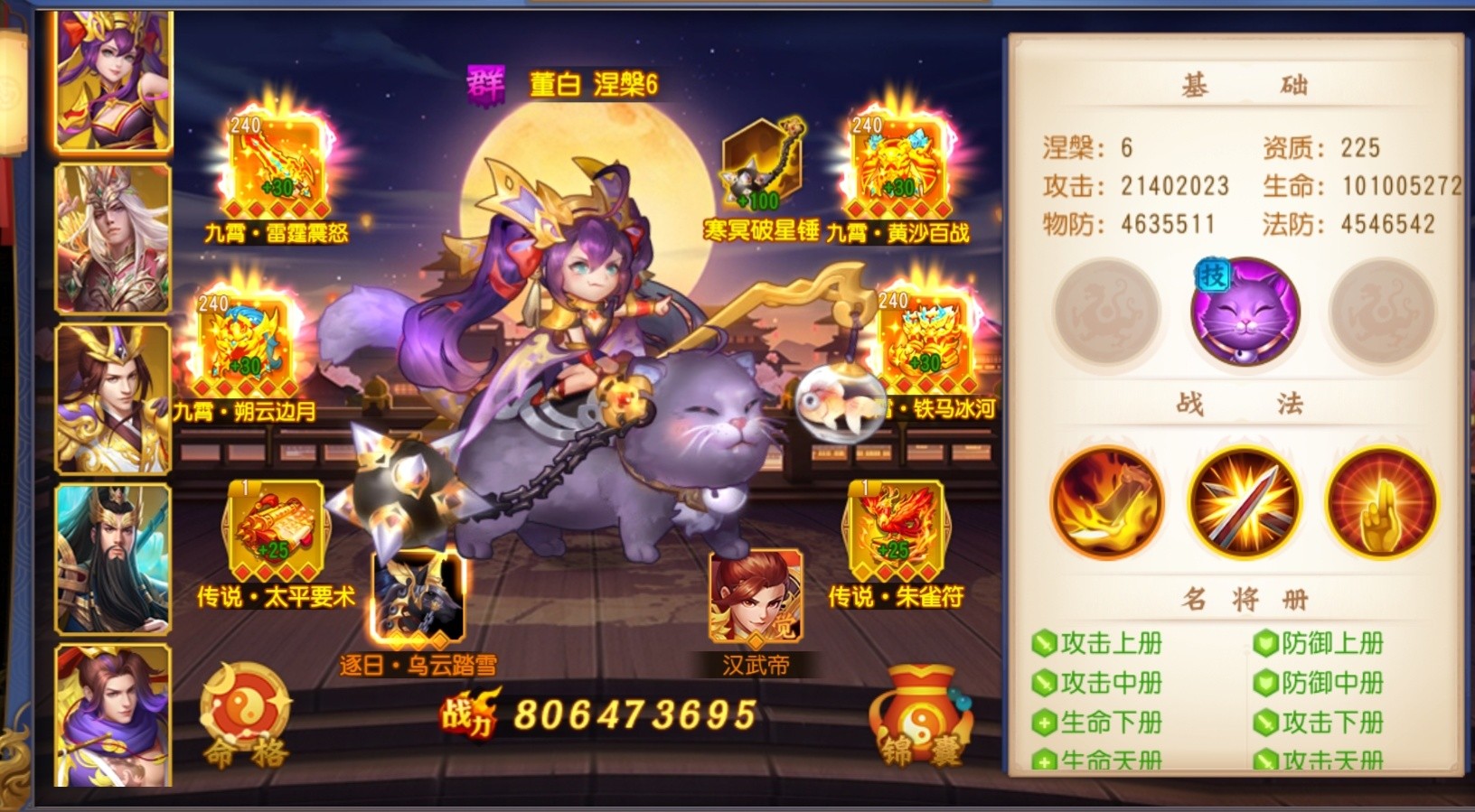 卢植、南华、董白铁三角,推图,打BOSS,攻城掠地,军团战,可谓无往不利。