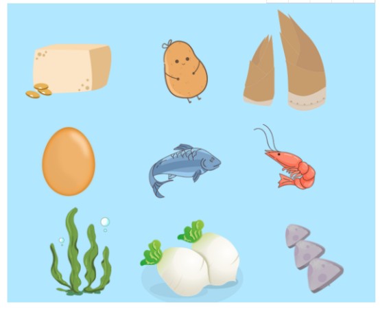 图片上面全部放满了食物的食材,有蔬菜、有海鲜鱼虾、海草等等,有豆腐、竹笋、白萝卜等的,都是吃的,说到我想立刻想去打边炉了。对的,这些不就是我们开火锅的食材。我将这些火锅食材上百度,看看这窝菜的名堂竟然叫做——关东煮