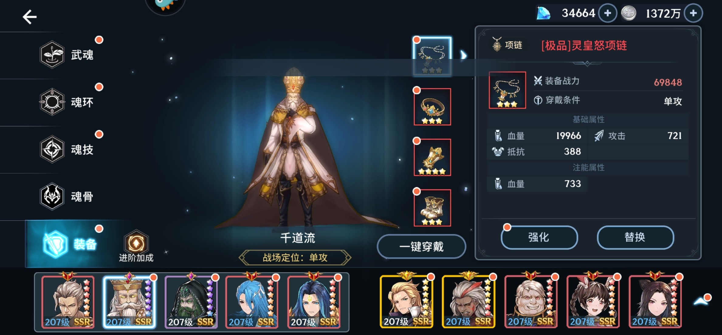 如果有富裕的资源,千道流是可以替换成刺血的。唐三也是可以换成宁荣荣或者奥斯卡我这里想到有新的套路,但需要多一套20。这里先卖个关子,等以后阵容更新了,帖子也会更新。