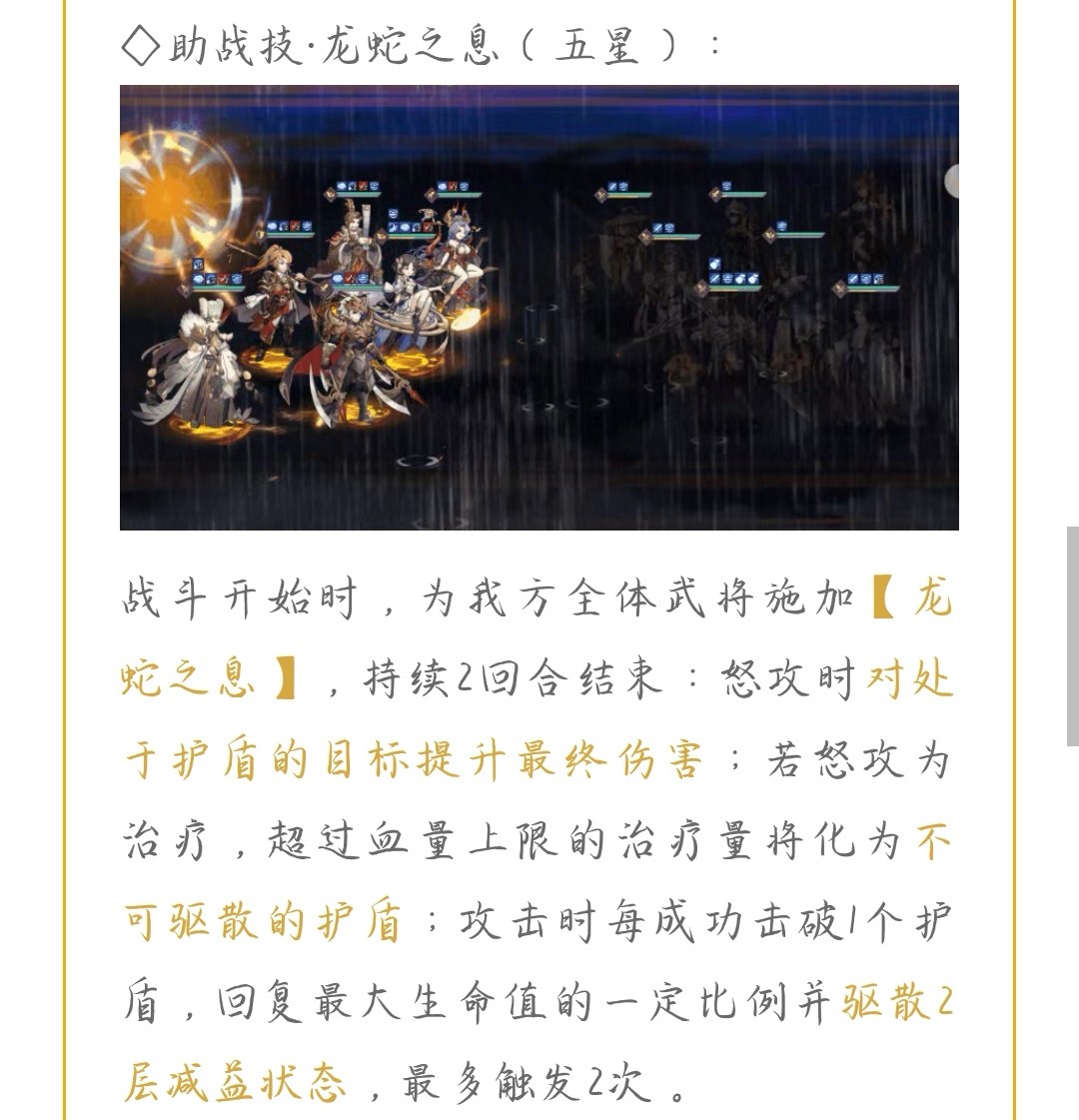 再者要考虑到“龙蛇之息”是否被驱散的问题,这很关键,如果是跟贾诩羁绊一样的情况,玄武的助战就不予考虑了