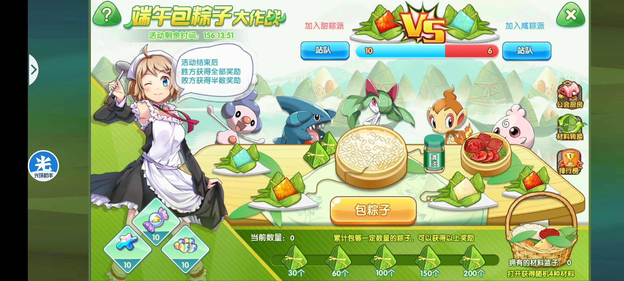 4、在公会厨房中,若玩家和其他公会成员合计包出了指定数量的指定粽子,当自己在这个公会中的历史贡献点达到了指定的数值时,就可以领取对应的奖励