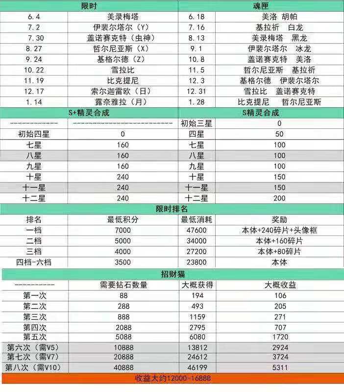 最新,限时,魂匣,时间表!!!!!!!!