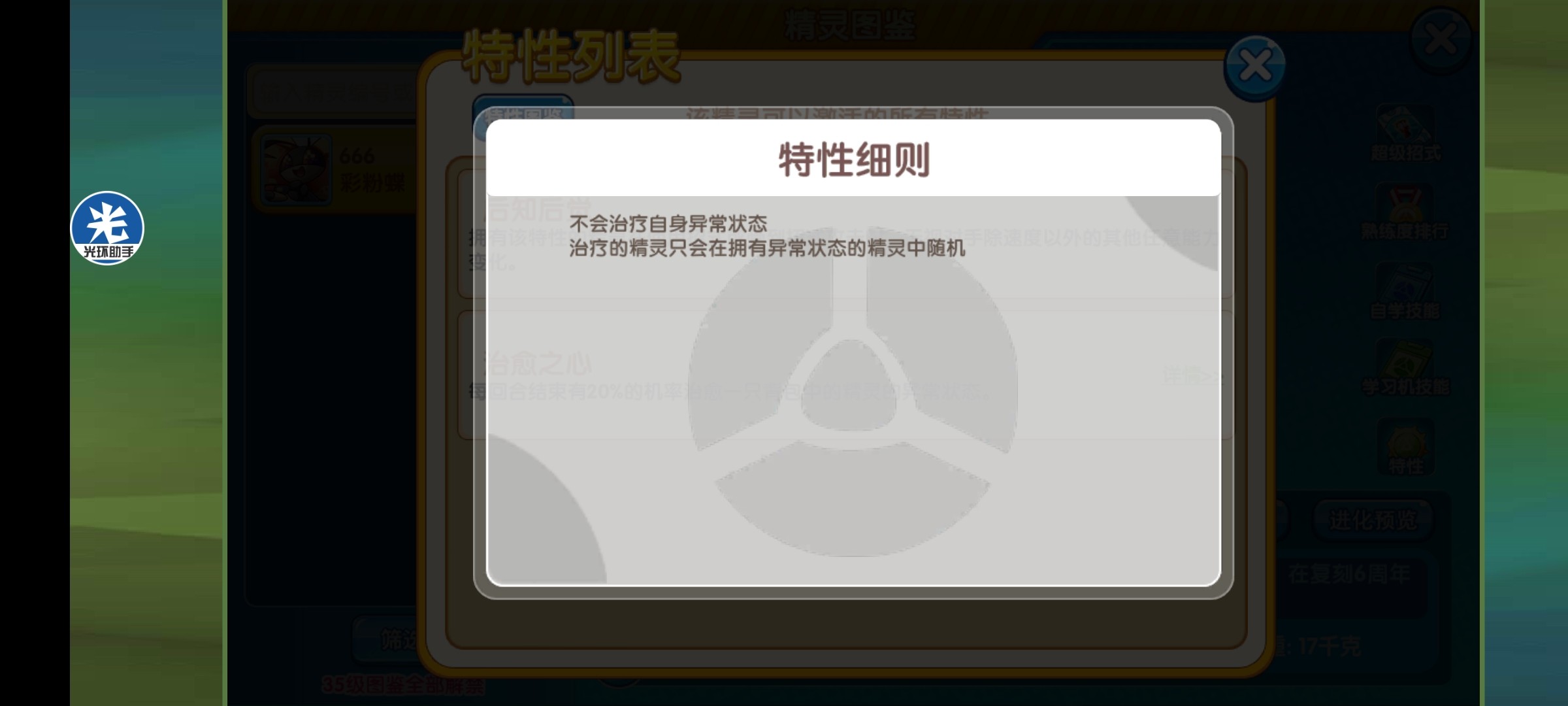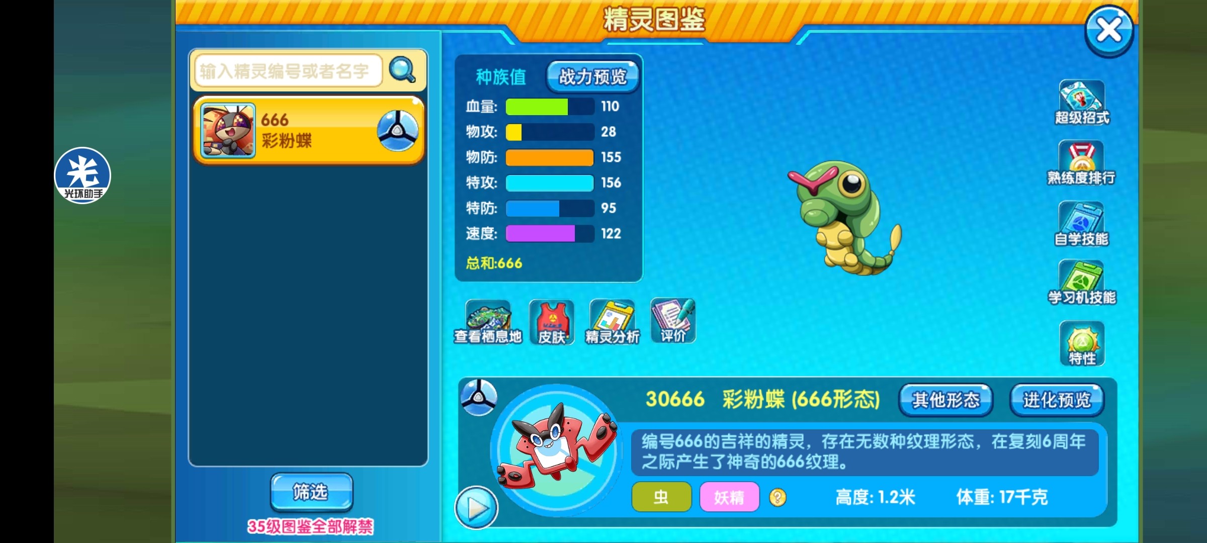 前言:大家好,我是@白,彩粉蝶在外表上形似现实世界的蝴蝶,它们拥有美丽的翅膀以及长长的触角,眼睛和进化前一样都有呈现方型的形状。彩粉蝶翅膀上的斑点位置、花纹形状和整体颜色根据3DS所设定的居住地区的不同而有所不同,其中2种只能从官方活动得到,花纹共有20种。复刻中作为又一只拥有后知后觉的宠物,注定它是一个强大的盾牌,而本期我们要介绍的,正是它。