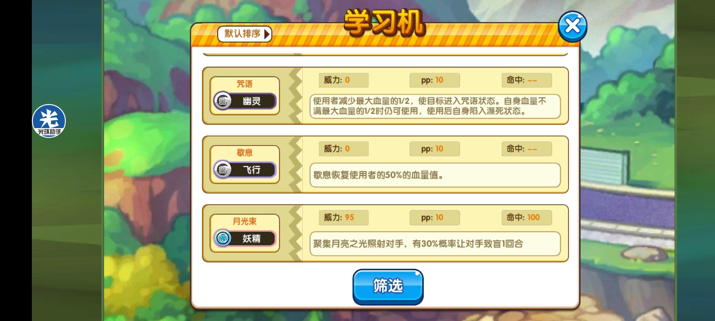 配招歇息必带,然后就是辅助,可以光墙,也可以清雾除钉,还能芳香清除状态,而它还能学习寄生这个恶心技能,如果怕对手赖场,那么也可以蝶舞起来月光束输出,当然技能有限,所以就按照队伍需求搭配。
