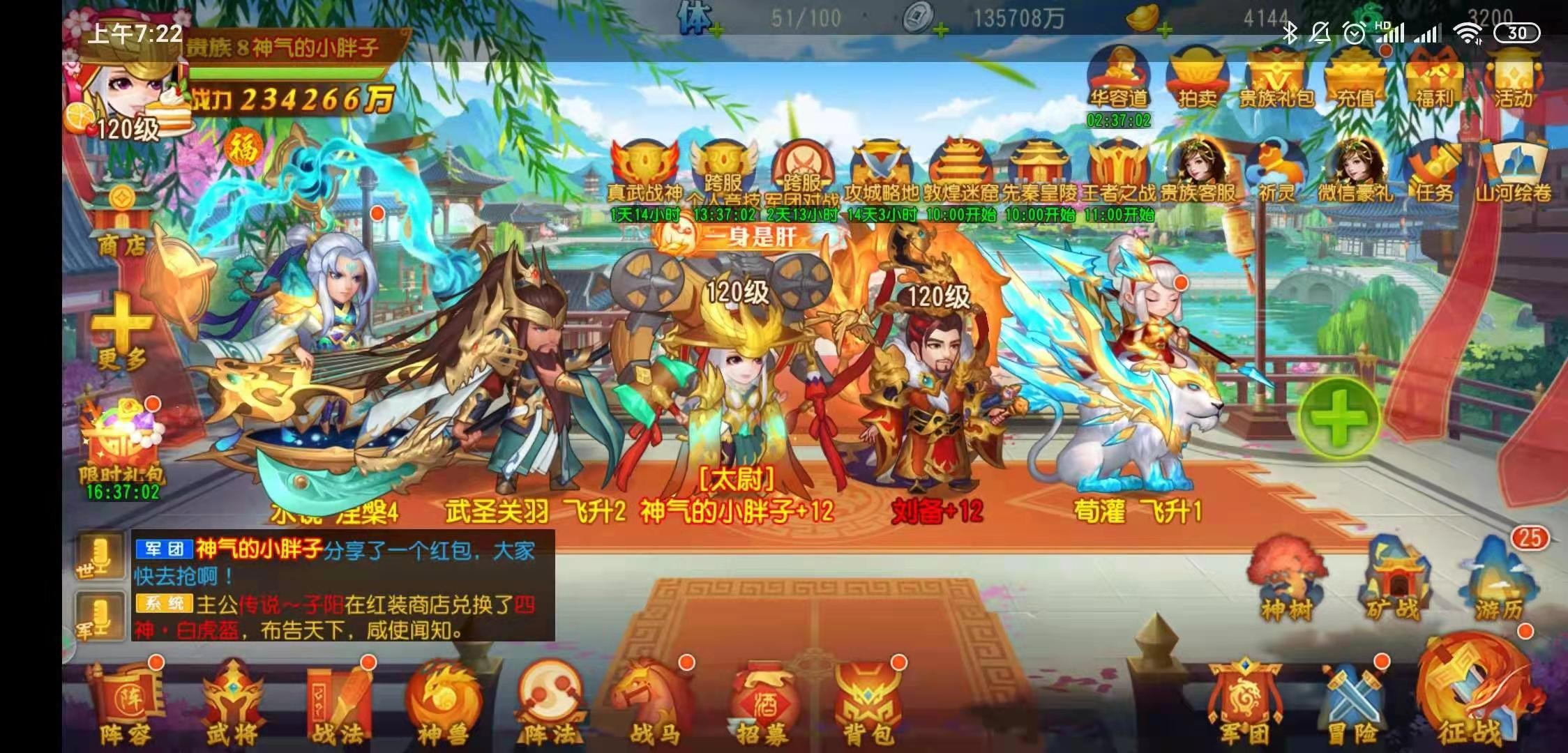 夯实自己的基础资源,有金将就激活天册和开战法。优先出气定神闲、七窍玲珑战法。