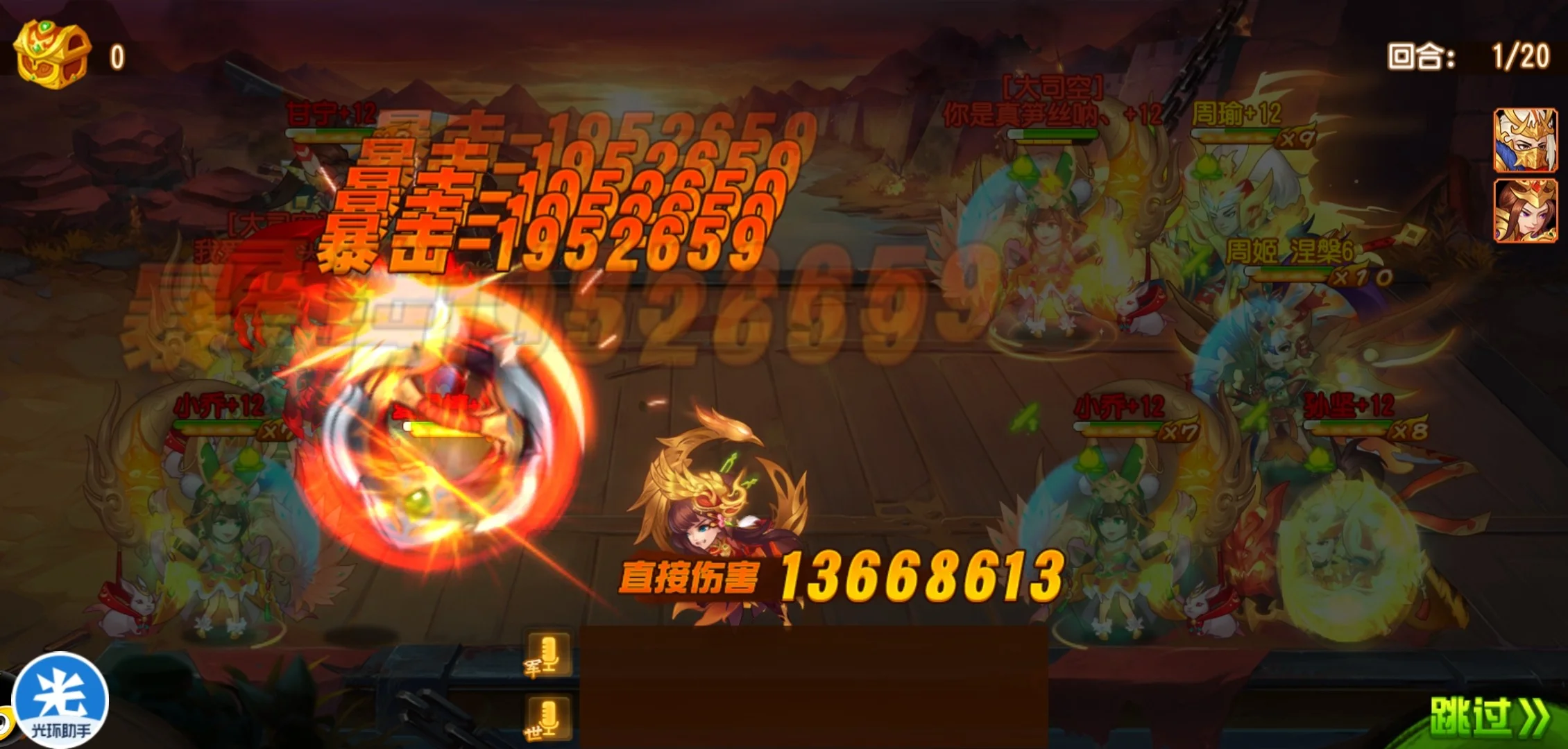 另外随着后期的防御能力提升,以上三个武将正常情况下一回合只能行动一次,没有额外的行动次数,第一下打不死对手,基本就没有下一次出手的机会。