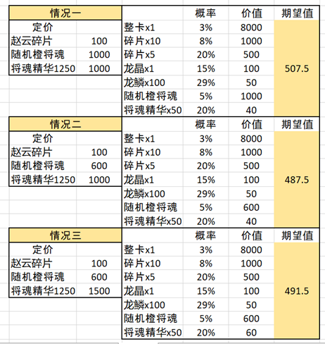 下图为招魂券的期望价值 给大家参考情况一:完全依照官方定价(不是那么贴近实际)