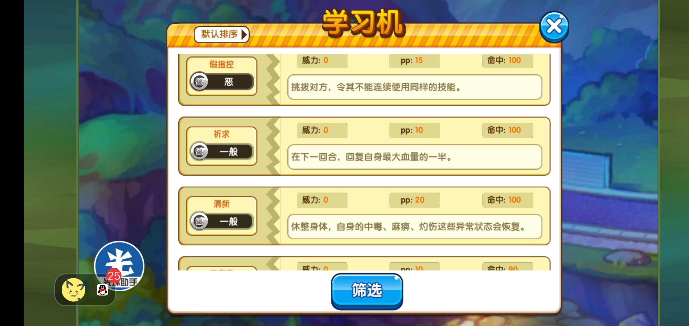 猛毒素、减半反射、替身、咒语、守住、泥汤、装腔作势、假指控、挑拨、祈求、哈欠、假哭、噪音、月光、急速转变、突袭、诈欺、镜子系、黑雾、治愈铃声。