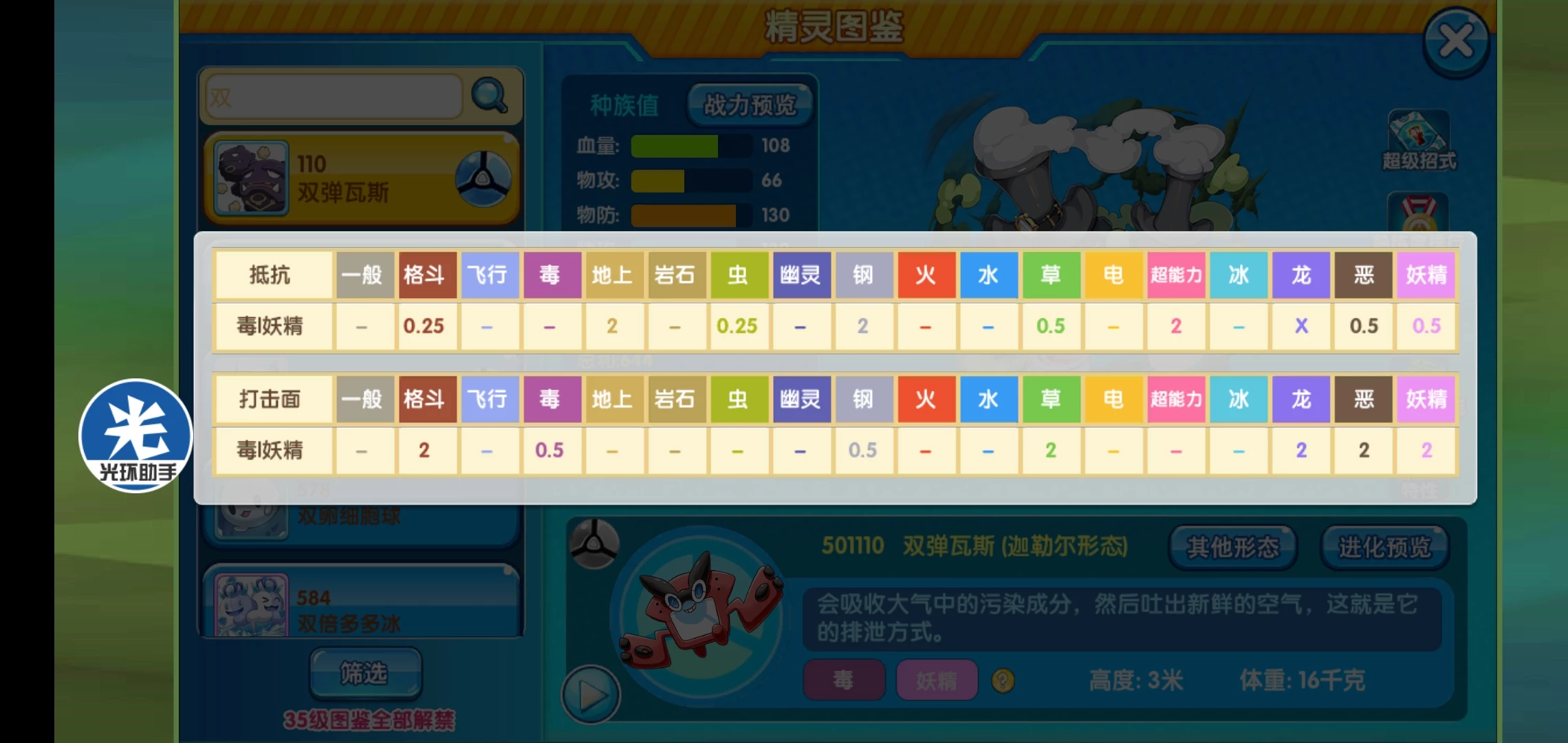血量108,双防130和150,还是挺耐看,速度60就不用看了,走个骗术还可以,特攻130,属于不疼不痒的攻击,所以不建议输出。属性:毒系+妖精系