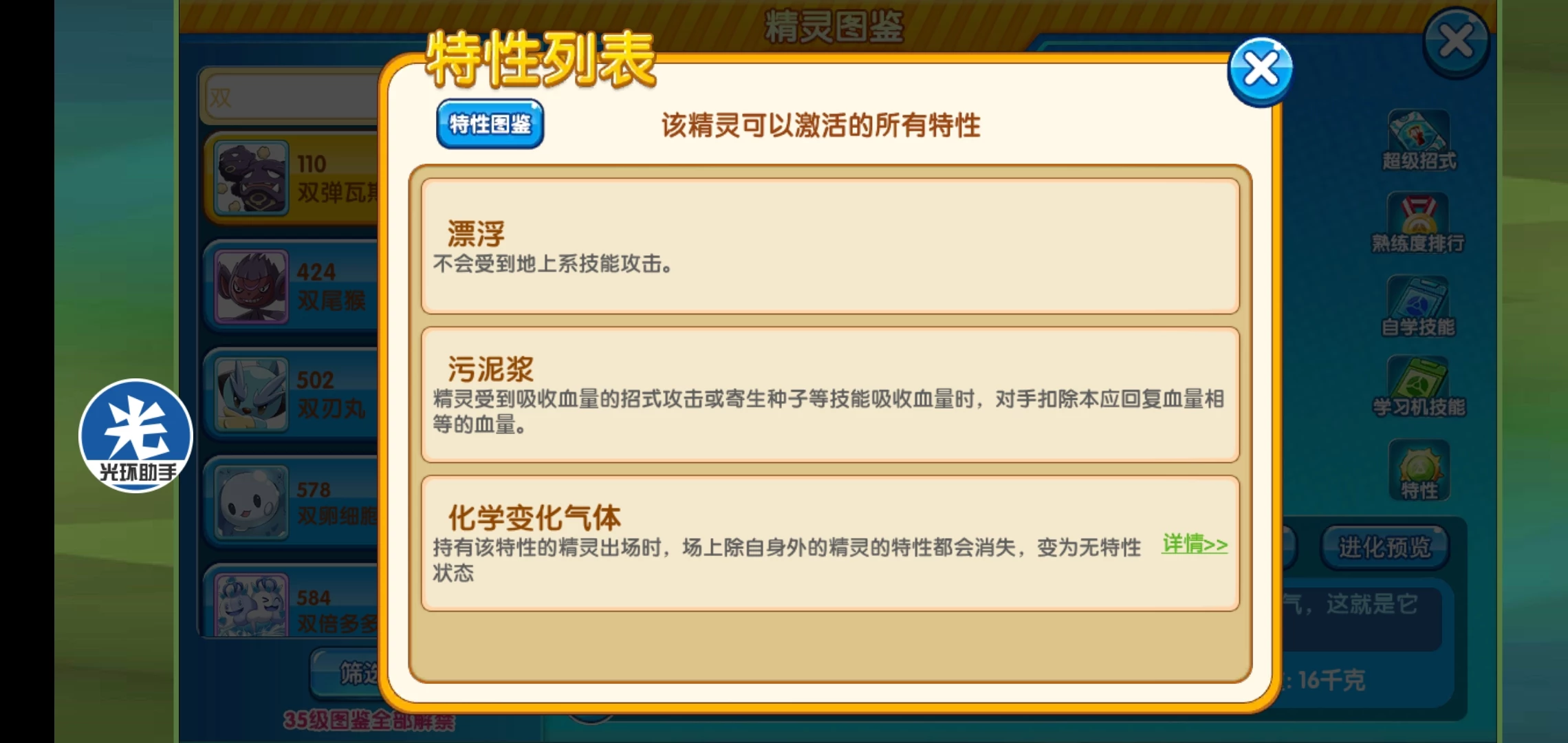 化学变化气体特性的精灵下场后,场上的精灵会恢复原来的特性。