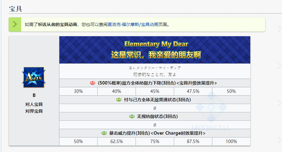 ②优秀的NP率:0.76%的基础NP率,配合3hits的蓝卡,技能还有50%蓝魔放,这让福尔摩斯在实战之中开启二技能集星,一技能降低敌人蓝卡耐性之后可以做到双蓝卡暴击触发鞭尸回收100NP的效果。